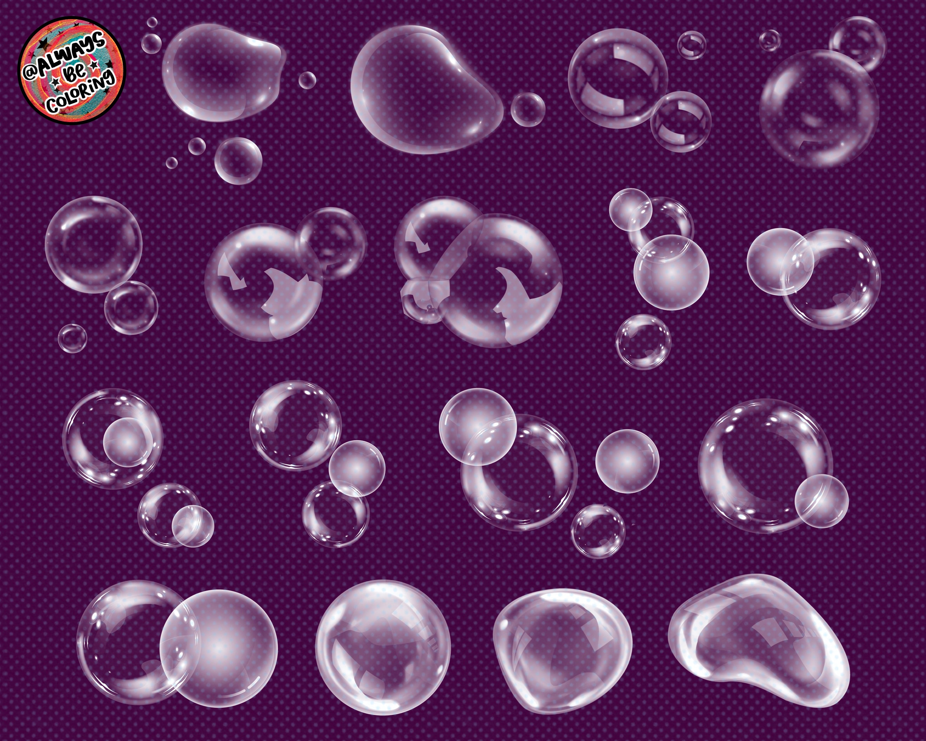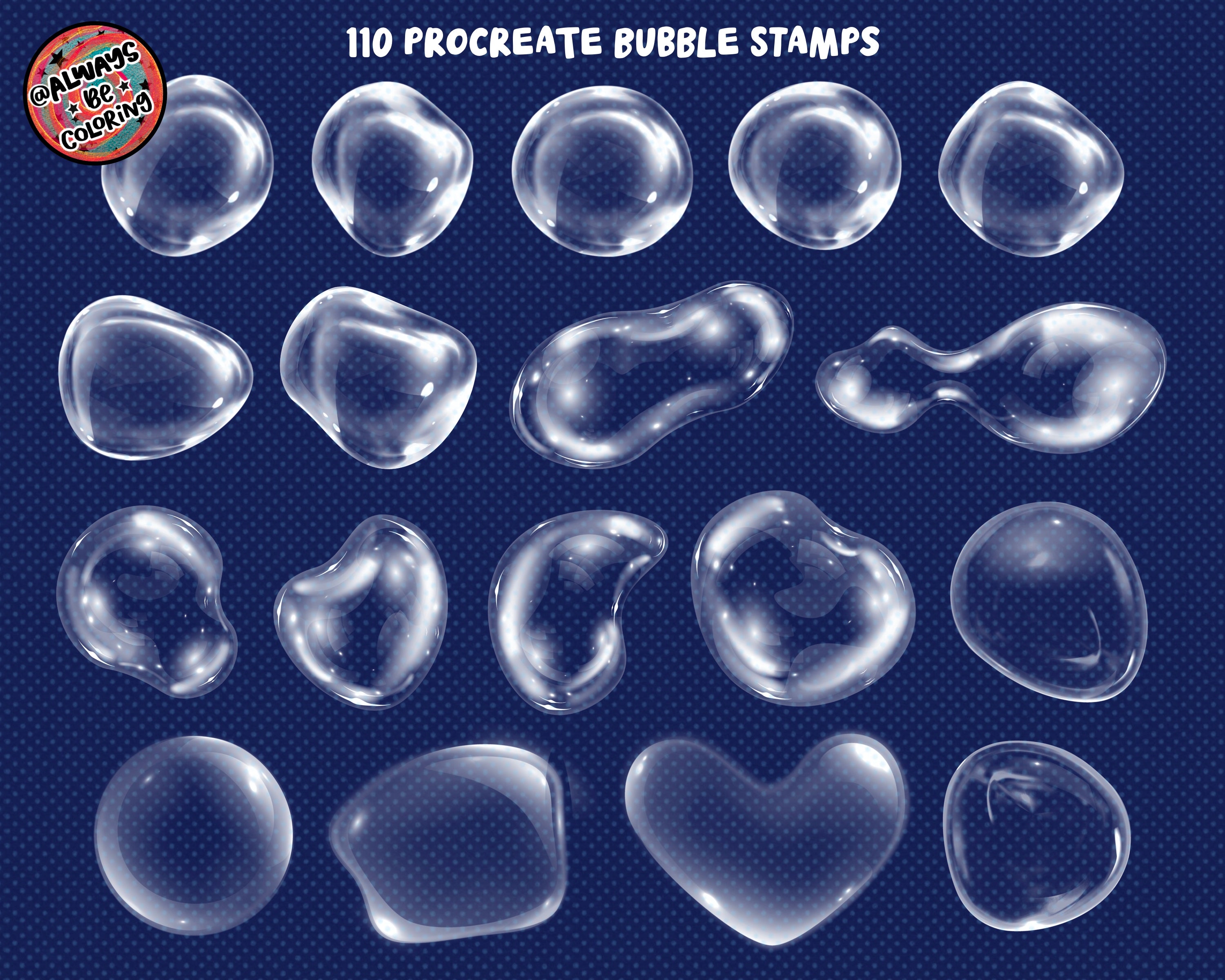 128 Photorealistic Procreate Bubble Stamps and 3D Bubble Brushes. Plus 3D Color Changing Bubble Brushes - color changes with varying brush pressure! Whether you’re designing whimsical illustrations, creating social media graphics, or just adding a bit of fun to your lettering, this set is packed with everything you need to make your work POP!