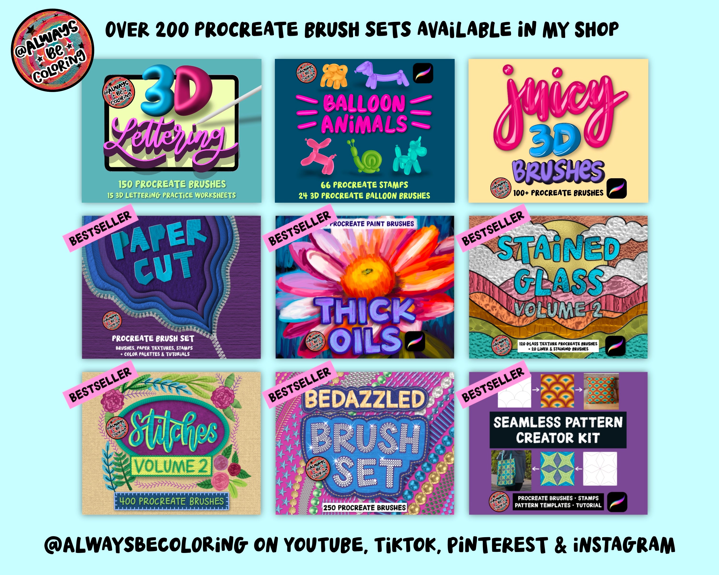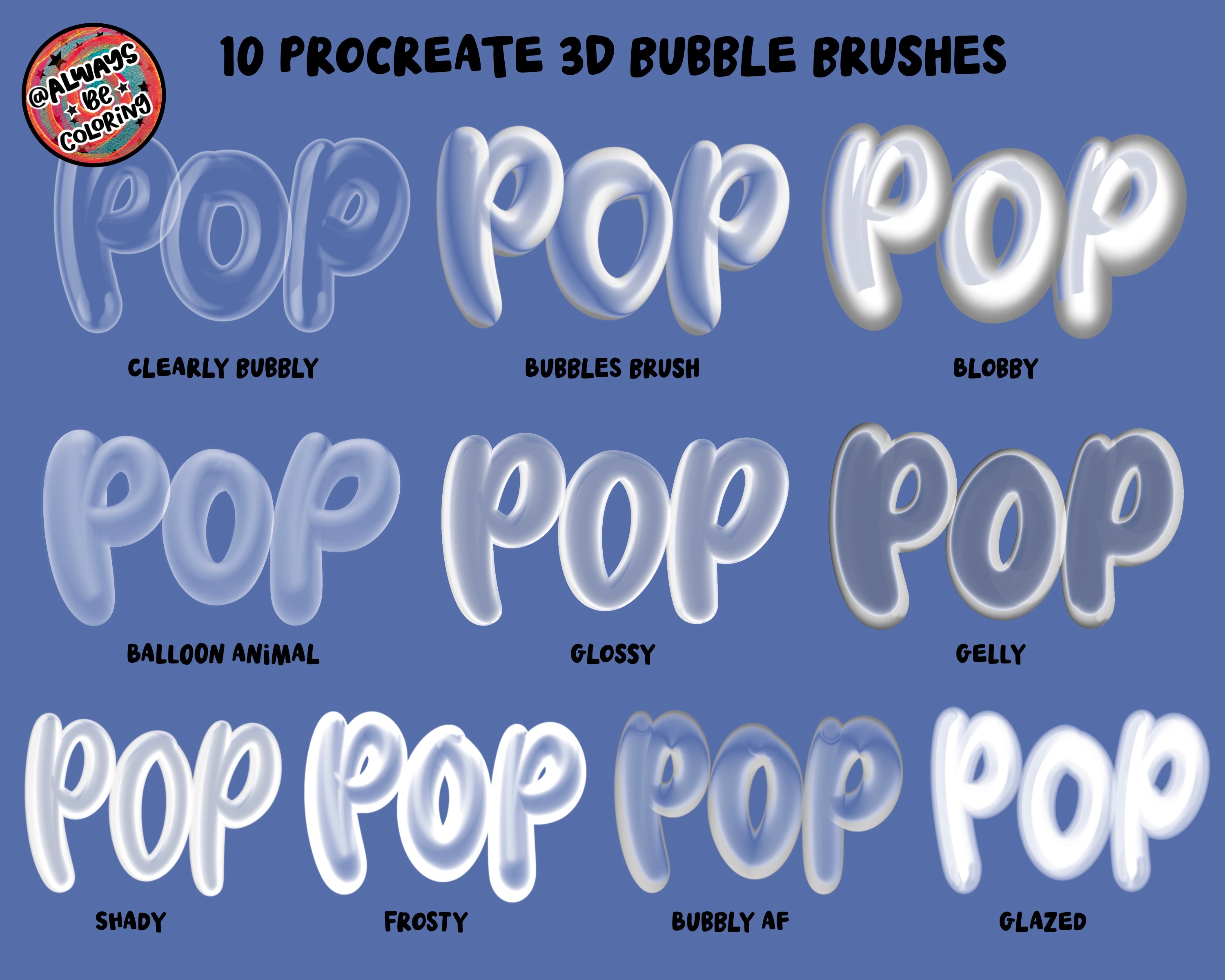AlwaysBeColoring, procreate realistic bubble stamps, 3D bubble brushes, procreate bubble letters, digital lettering brushes, procreate stamp pack, procreate 3d lettering brushes, procreate 3d rainbow color changing brushes, procreate backgrounds, procreate beginner, procreate illustrations, drawing, digital art