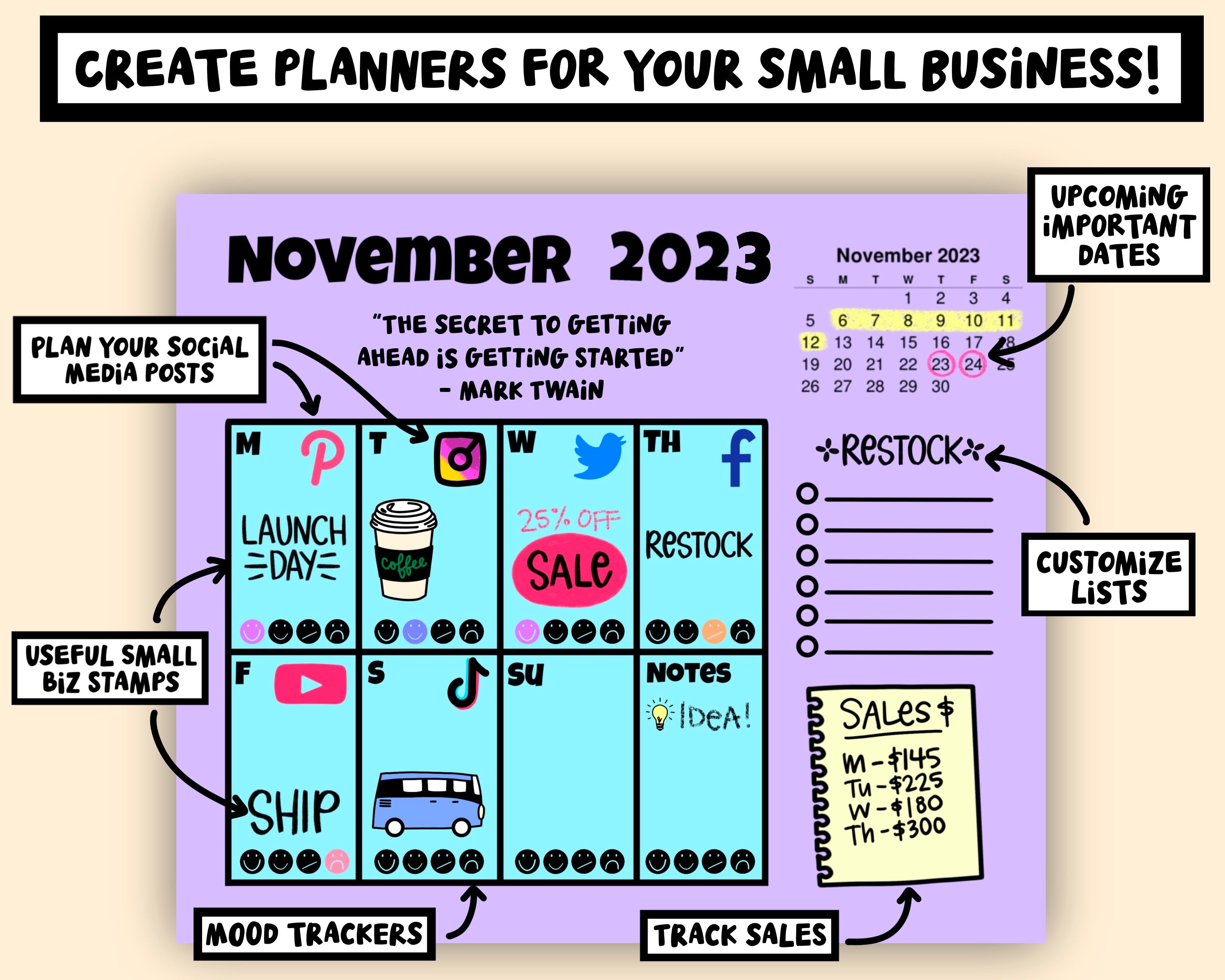 Procreate Calendar & Planner Journal Stamp Brush Bundle! 530 stamps including layouts, months, dates, monthly calendars through 2024, blank calendars, over 20 trackers, cute icons, borders, dividers, and so much more! Save time with these handy stamps and focus on the fun part of making and decorating calendars and planner pages in the Procreate app!