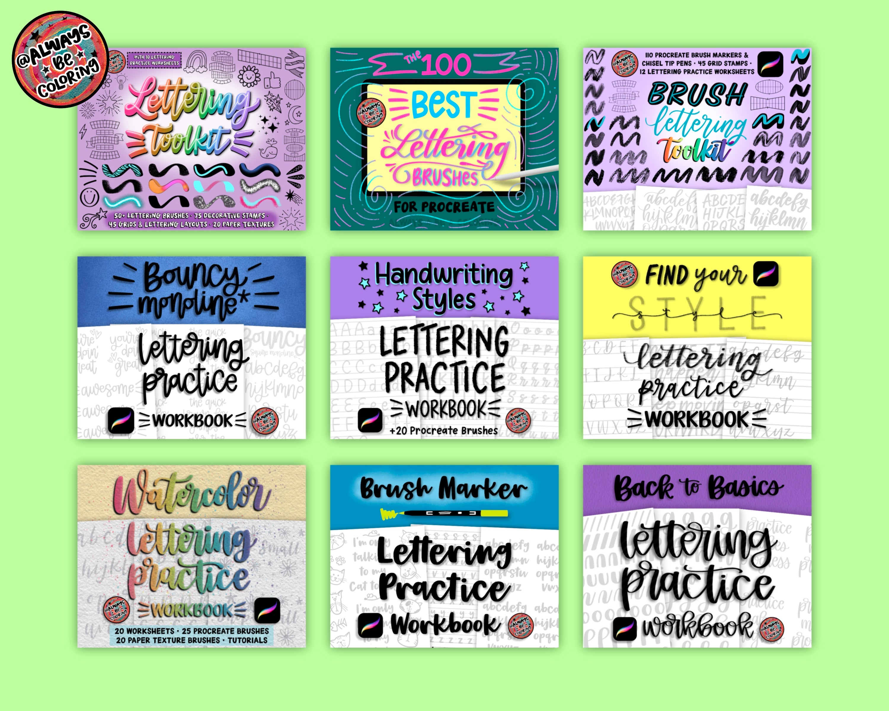 AlwaysBeColoring, handwriting practice, procreate lettering brushes, lettering workbook, digital lettering workbook, procreate brush set, neat handwriting, calligraphy practice sheets, printable handwriting worksheets, procreate worksheets, neat notes workbook, procreate brushes for beginners, printable alphabet worksheets, modern calligraphy practice, digital lettering guide, improve handwriting, handwriting drills, brush lettering practice, procreate calligraphy brushes, bullet journal lettering, lettering practice kit, alphabet practice sheets, neat note taking, procreate lettering bundle, handwriting worksheets for adults, printable practice worksheets, procreate glitter brushes, procreate rainbow color changing brushes