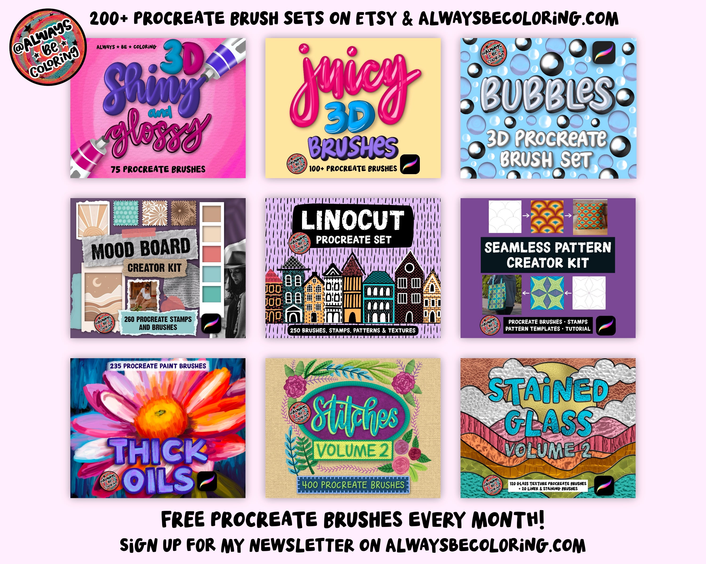 • 20 3D Procreate Lettering and Illustration Brushes - including original and color changing brushes