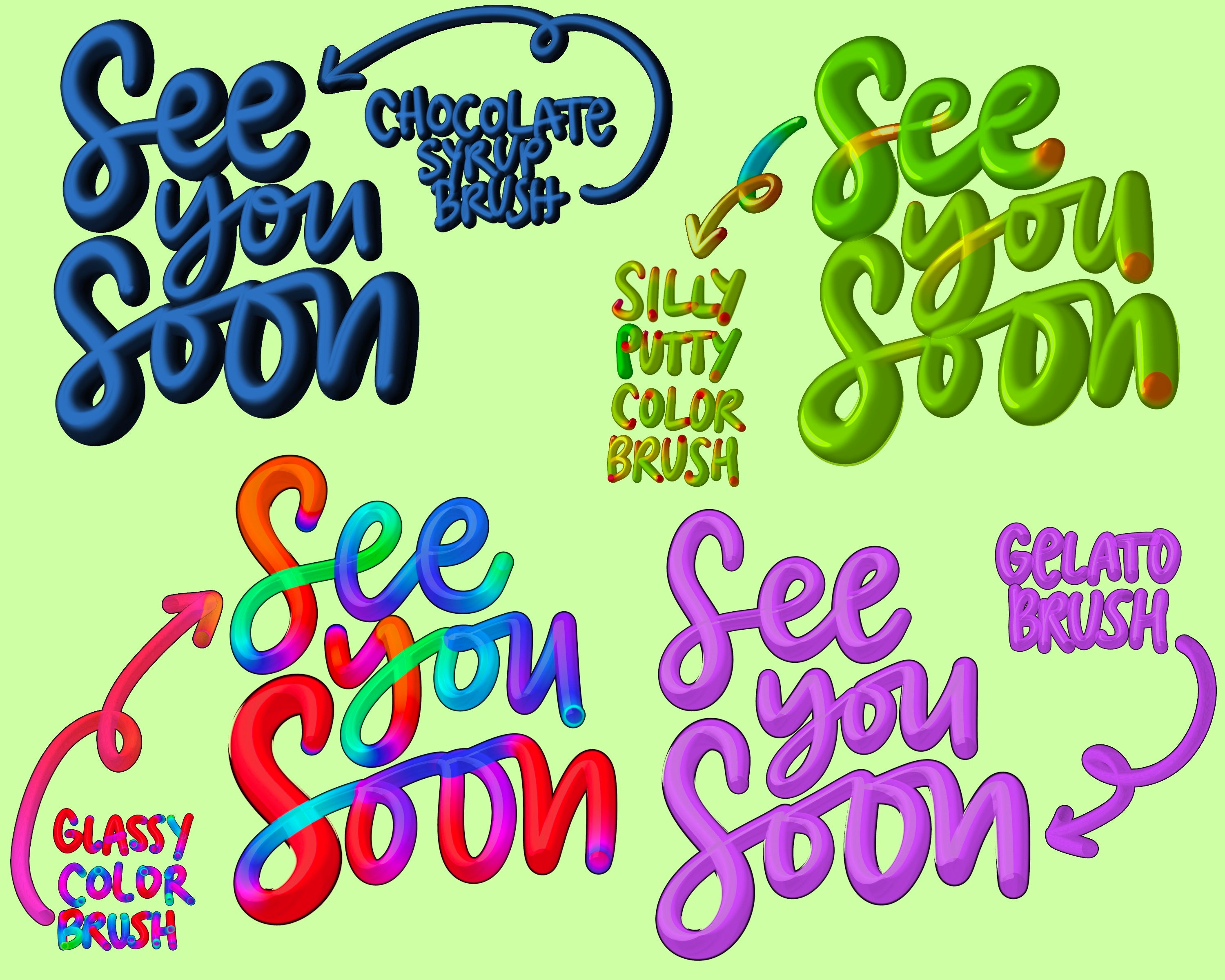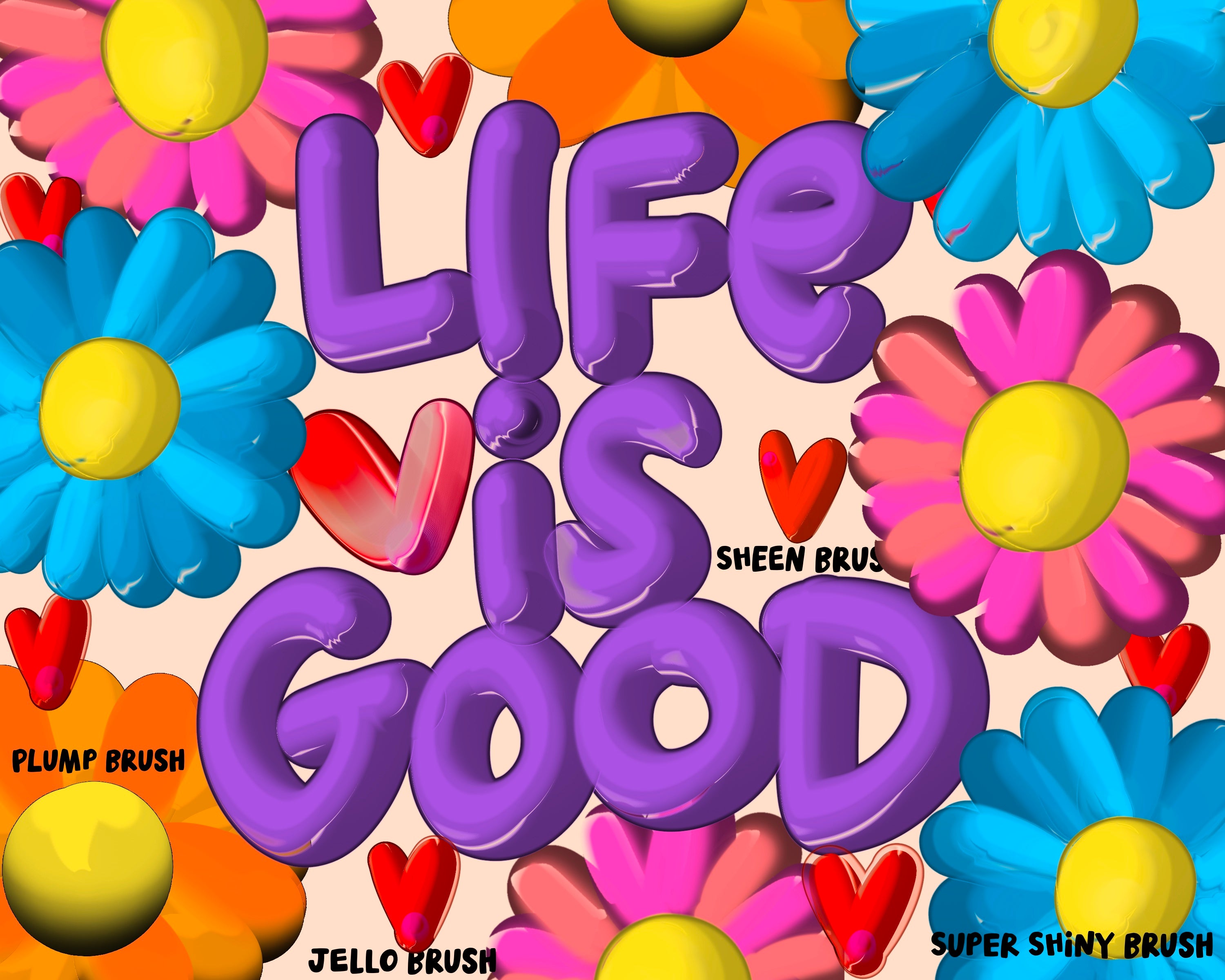 Introducing the 3D Shiny and Glossy Procreate Brush Set by AlwaysBeColoring! 75 deliciously smooth 3D brushes with built in highlights and shadows for an effortless 3D effect! Including 30 dynamic color changing brushes that change colors with brush pressure! Use them with your lettering and illustrations in the Procreate app on iPad!