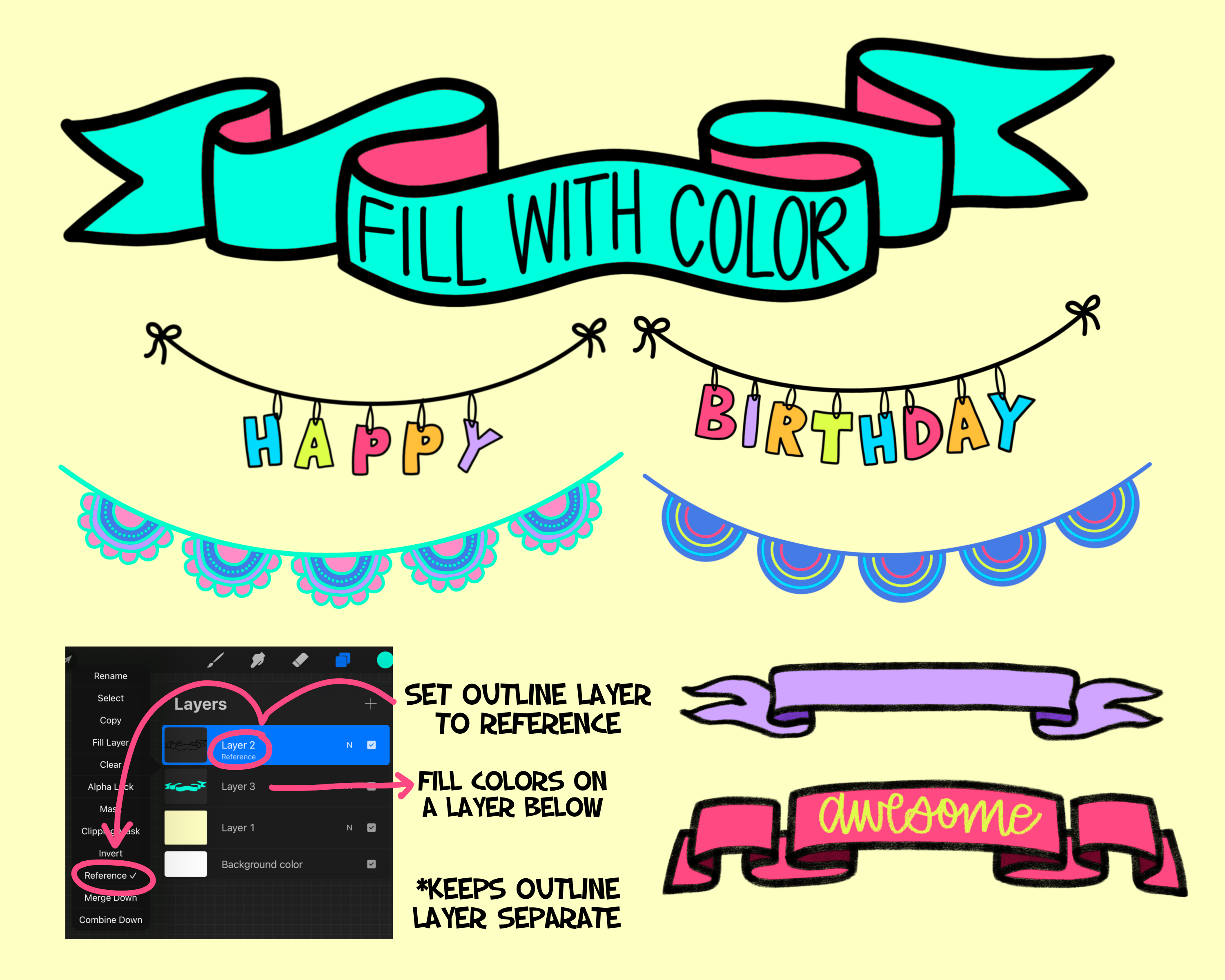 Overr 100 Procreate Stamp Brushes with Hand Drawn Banners and Festive Bunting Banners. Perfect for Crafting, Scrapbooking, Bullet Journals, Cards and Invitations.