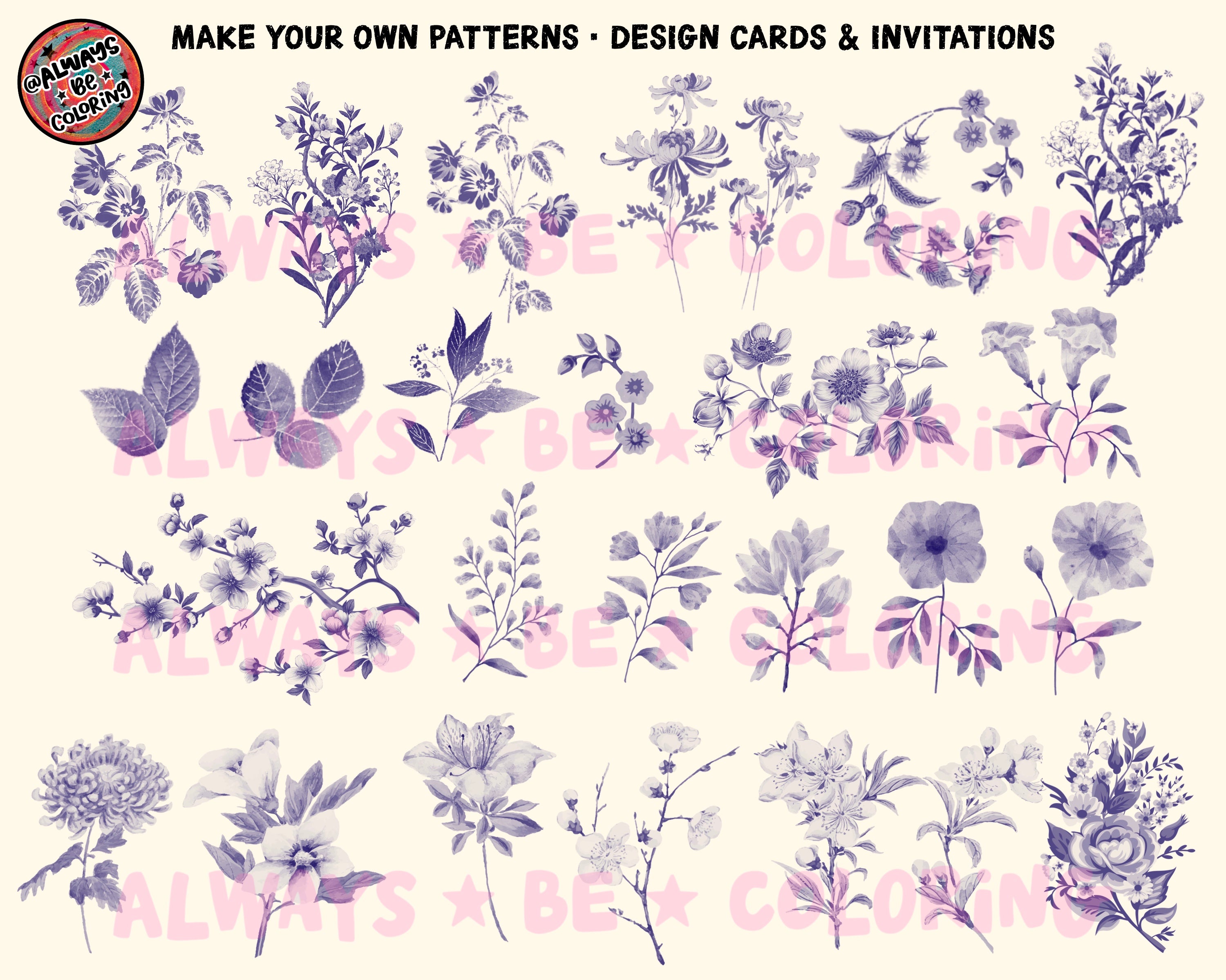 Keywords: AlwaysBeColoring, Procreate, Procreate Chinoiserie Brushes, Procreate Pattern Brushes, Procreate Seamless Pattern Brush Set, Procreate Fashion, Procreate Textures, Procreate Flower Stamps, Procreate Flower Seamless Patterns, Procreate Botanical Patterns, Procreate Leaves and Plant Patterns, Digital Chinoiserie Stamp Set, Chinoiserie Seamless Patterns, Procreate Cards and Invitations, Procreate Wreath Stamps, Flower Wreath Stamp Brushes