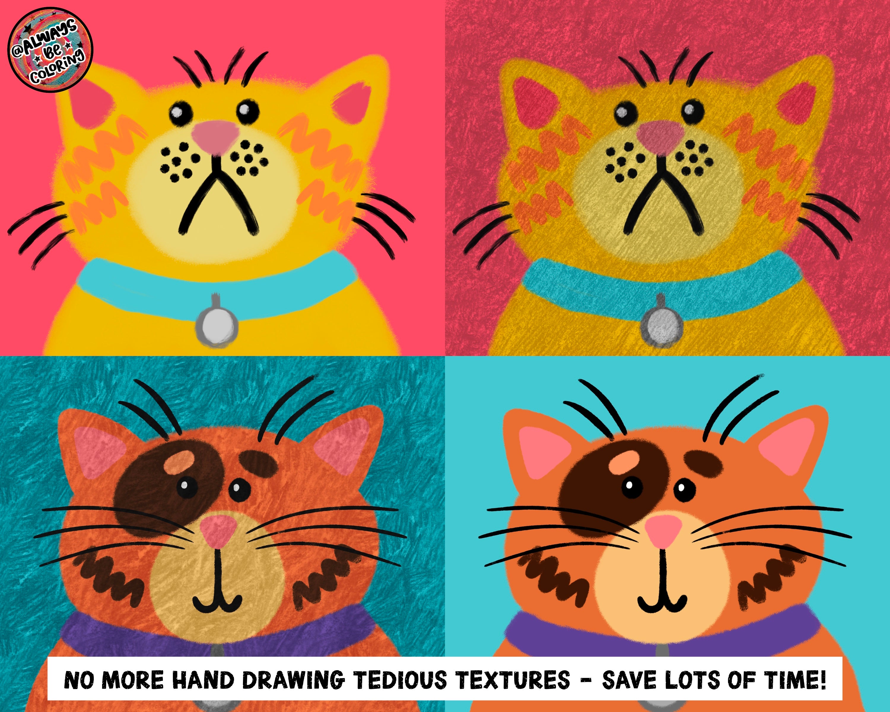 Elevate your digital art with effortless, professional textures with the new Procreate Creative Textures Brush Set by AlwaysBeColoring!