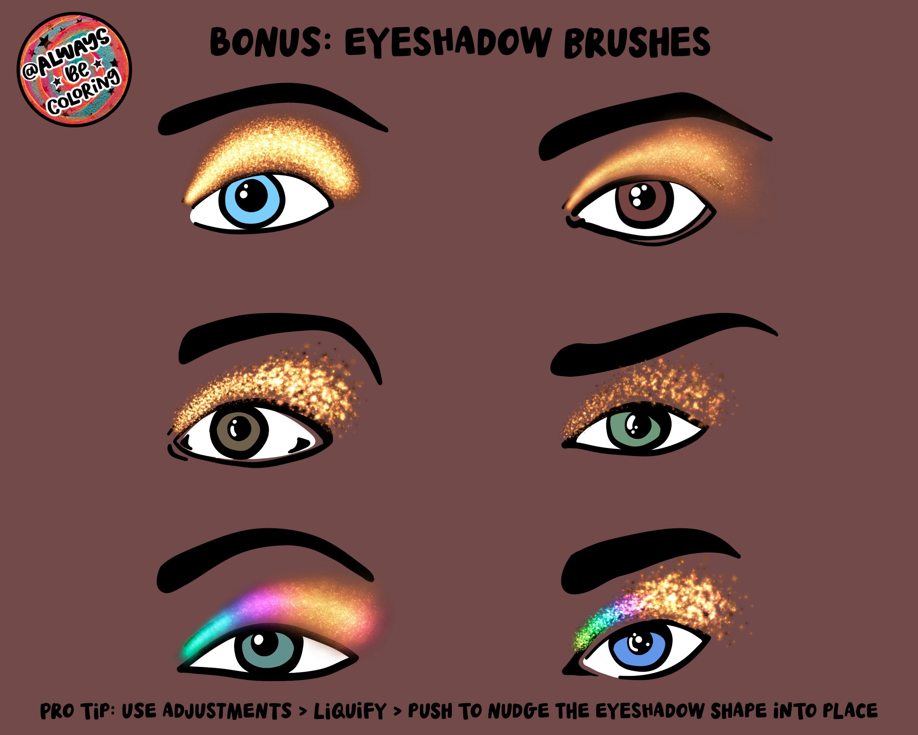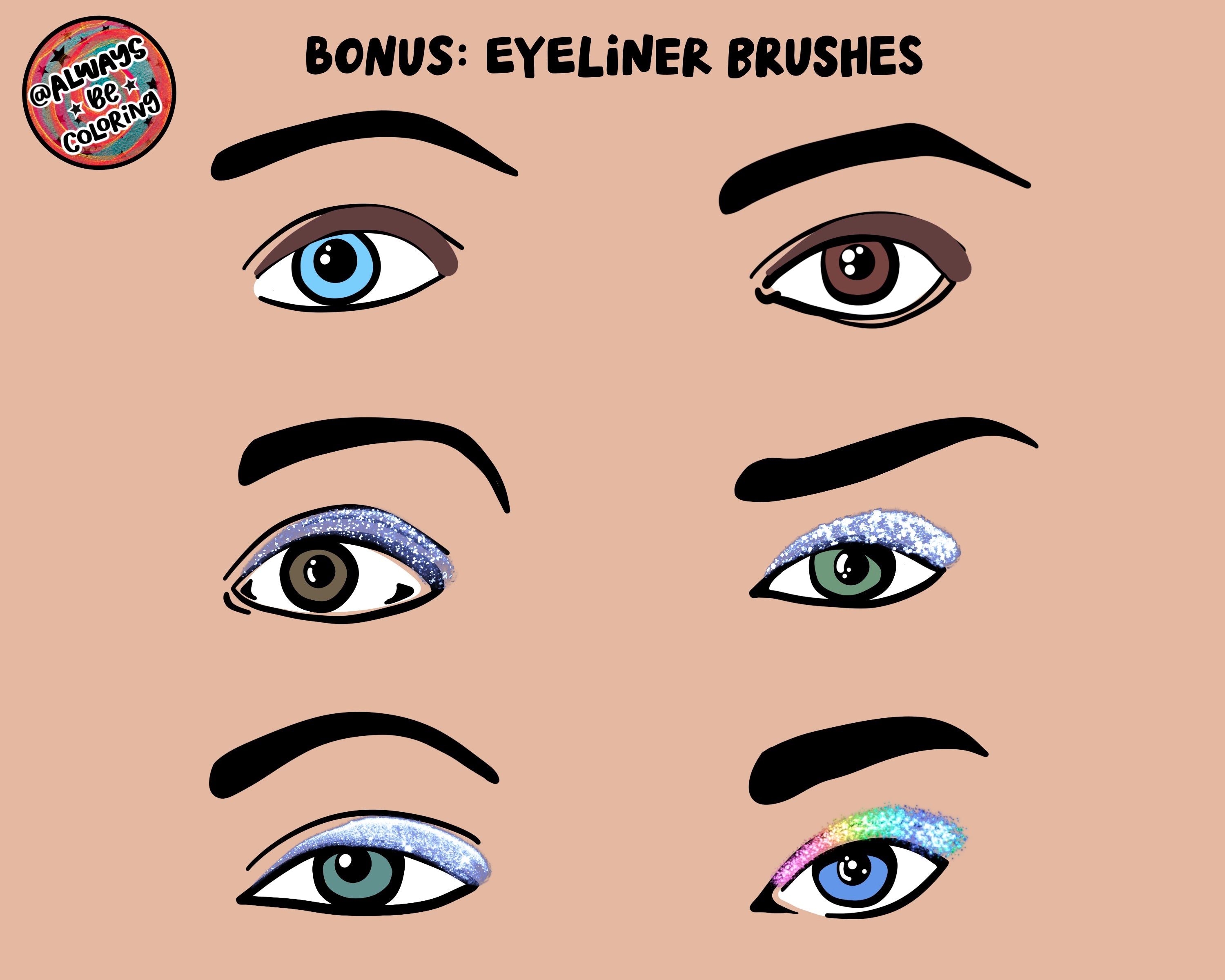 We’ve also included 6 eyeliner brushes and 6 eyeshadow brushes including glitter brushes and rainbow color changing brushes. Level up your digital portraits and illustrations with these new amazing dynamic eyelash brushes!