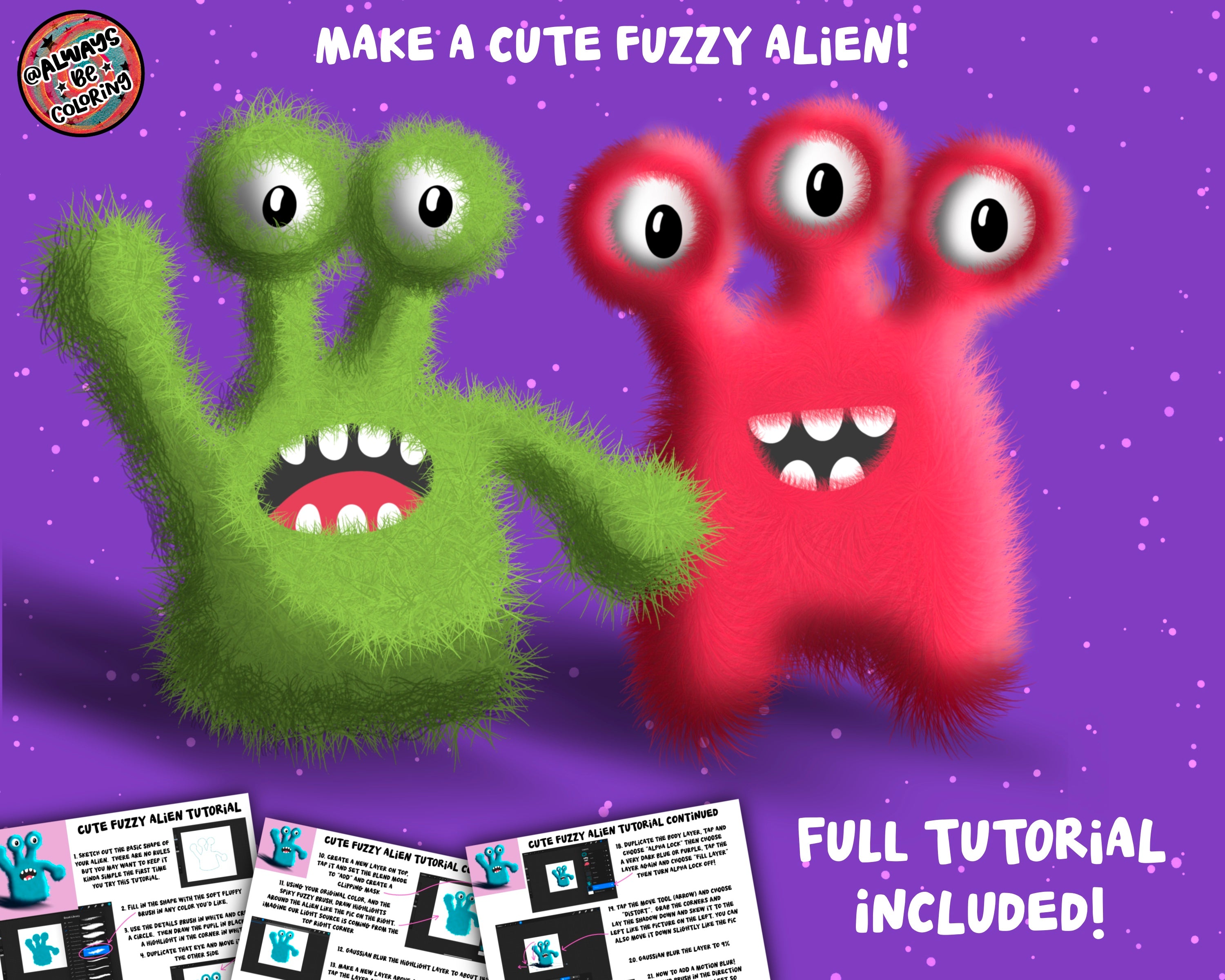 Procreate Fuzzy Fur Brush Set + Cute Alien Tutorial