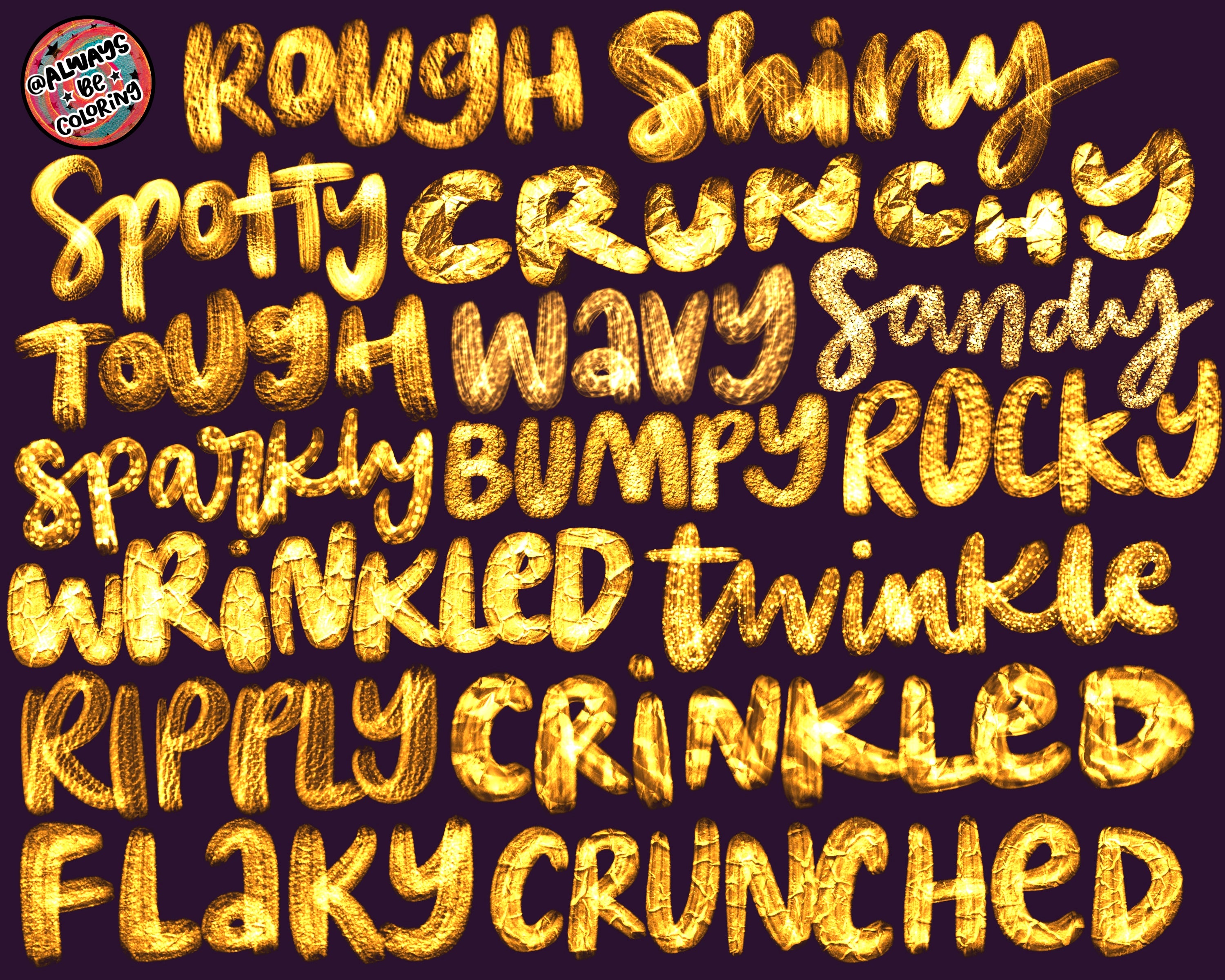 65 Metallic Gold Foil Procreate Brushes, 2 Procreate Color Palettes and 10 High Quality Gold Foil Paper PNGs. The Foil Papers are 3000 x 3000 pixels and 300 DPI. Use them as a background, or use as an overlay with clipping mask on top of your text or drawings. A PDF User Guide is included with step by step instructions.