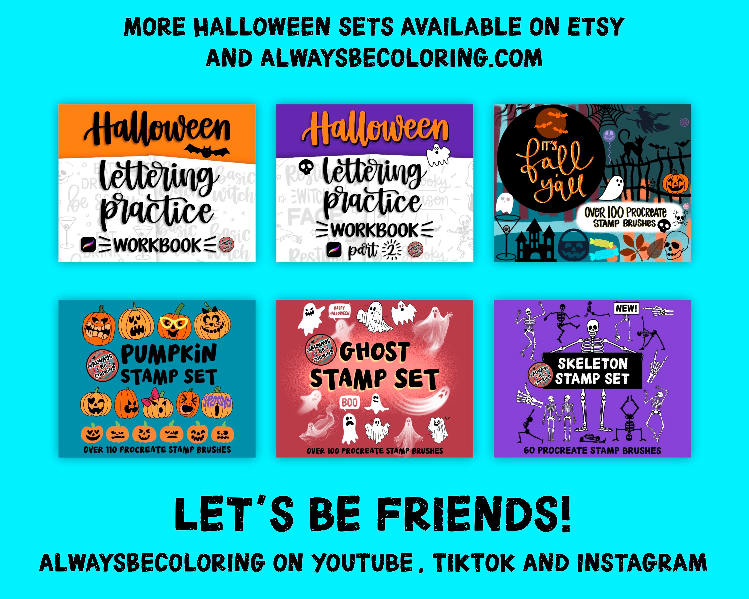 AlwaysBeColoring, Halloween Procreate brushes, spooky brush set, Procreate Halloween brushes, Halloween clip art Procreate, ghost Procreate brush, bat Procreate brush, witch Procreate brush, pumpkin Procreate brush, spider Procreate brush, cobweb Procreate brush, haunted house Procreate stamp, skull Procreate brush, Procreate fall brushes, spooky border brushes, Halloween pattern brush, Procreate witch hat stamp, creepy Procreate brushes, Procreate jack o lantern stamp, Halloween doodle Procreate set, commercial license, procreate beginner, Procreate Seamless Pattern Brushes, Procreate Border Brushes, Digital Planner Brushes, Seasonal Calendar Brushes October