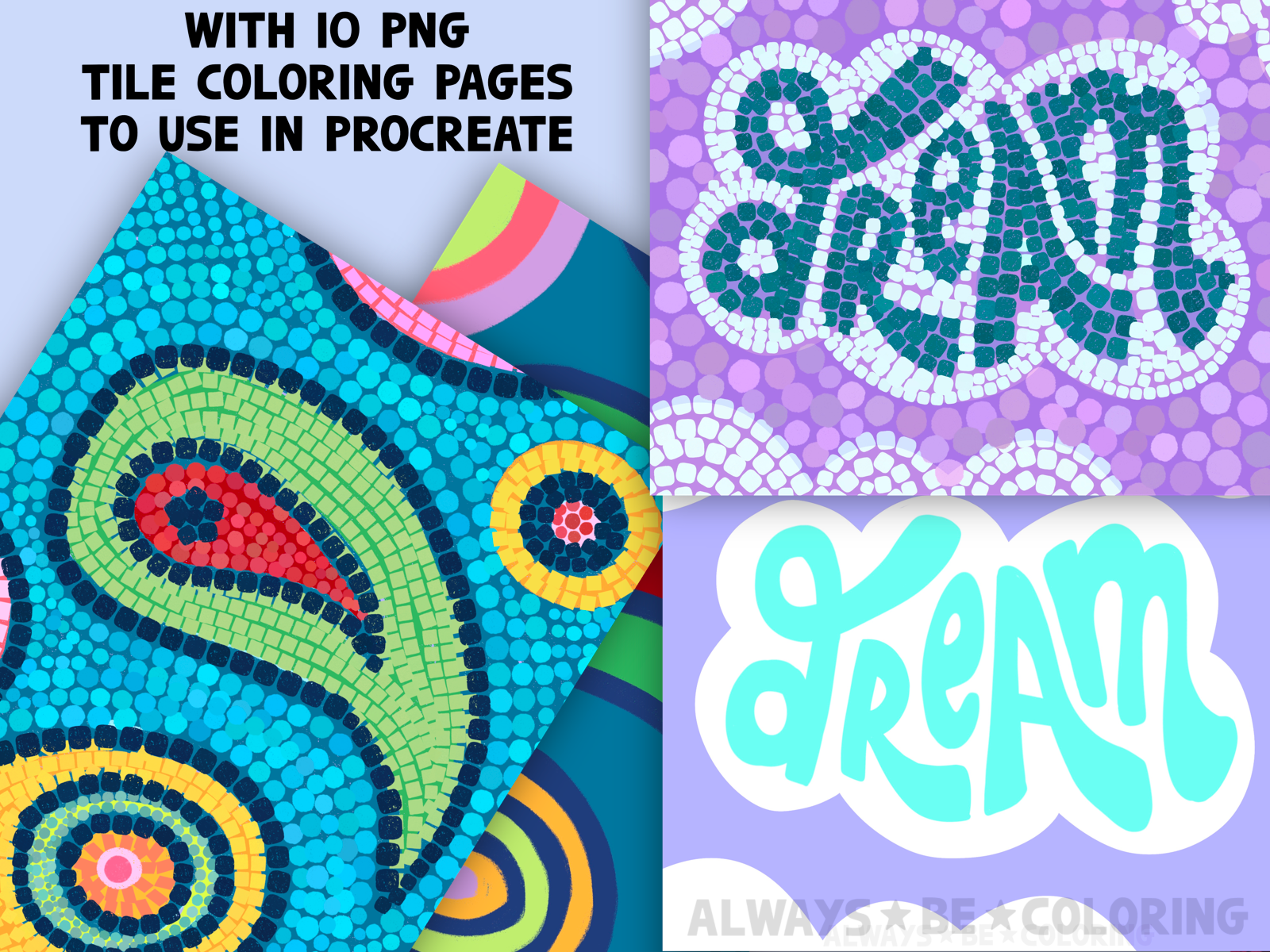 - 4 .brushset files that contains all 100 Procreate Brushes plus one zip file with the quick start guide and 10 Procreate Tile coloring pages