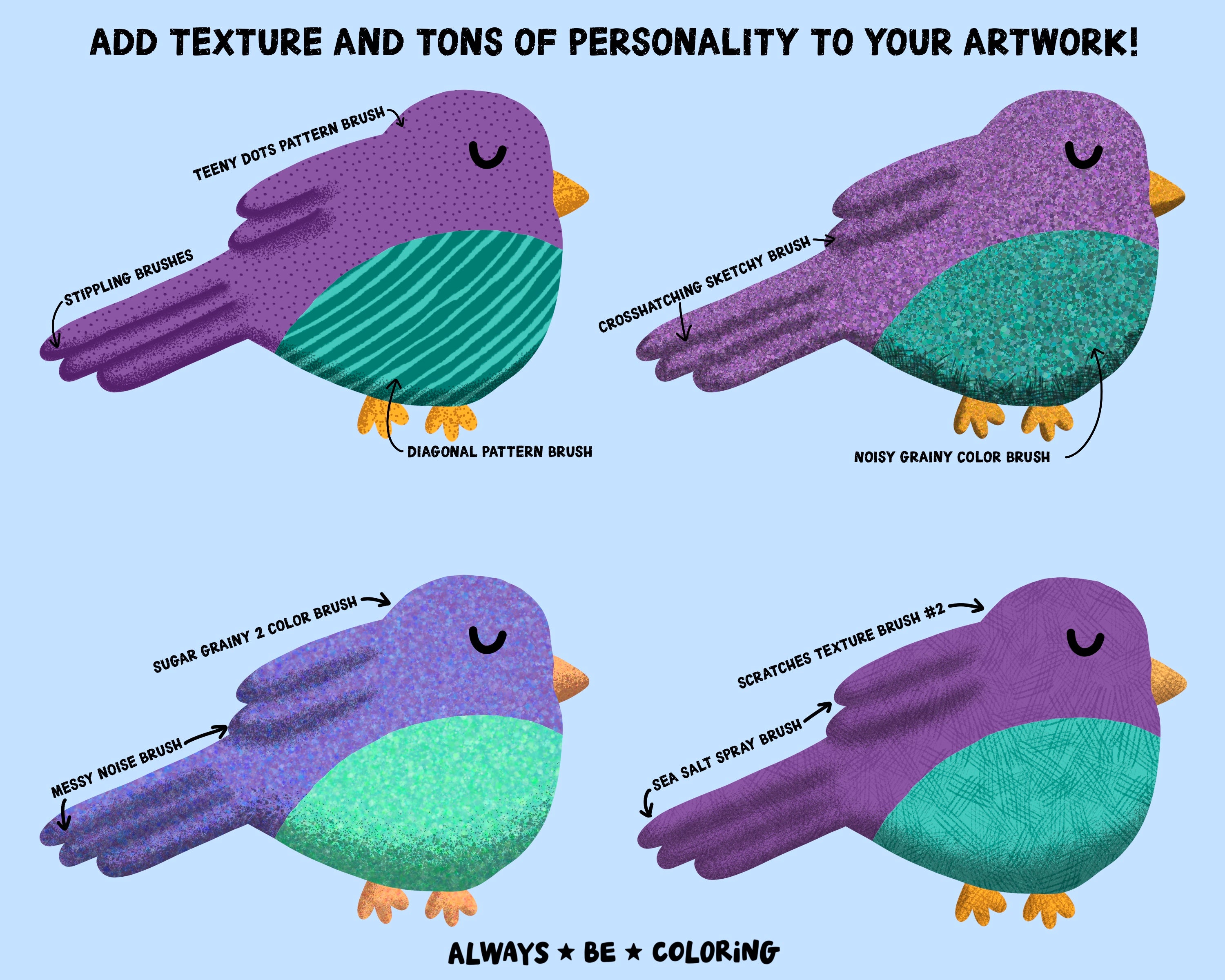 Tips, tutorials and videos on Instagram, Pinterest, and Tiktok - AlwaysBeColoring on all platforms.