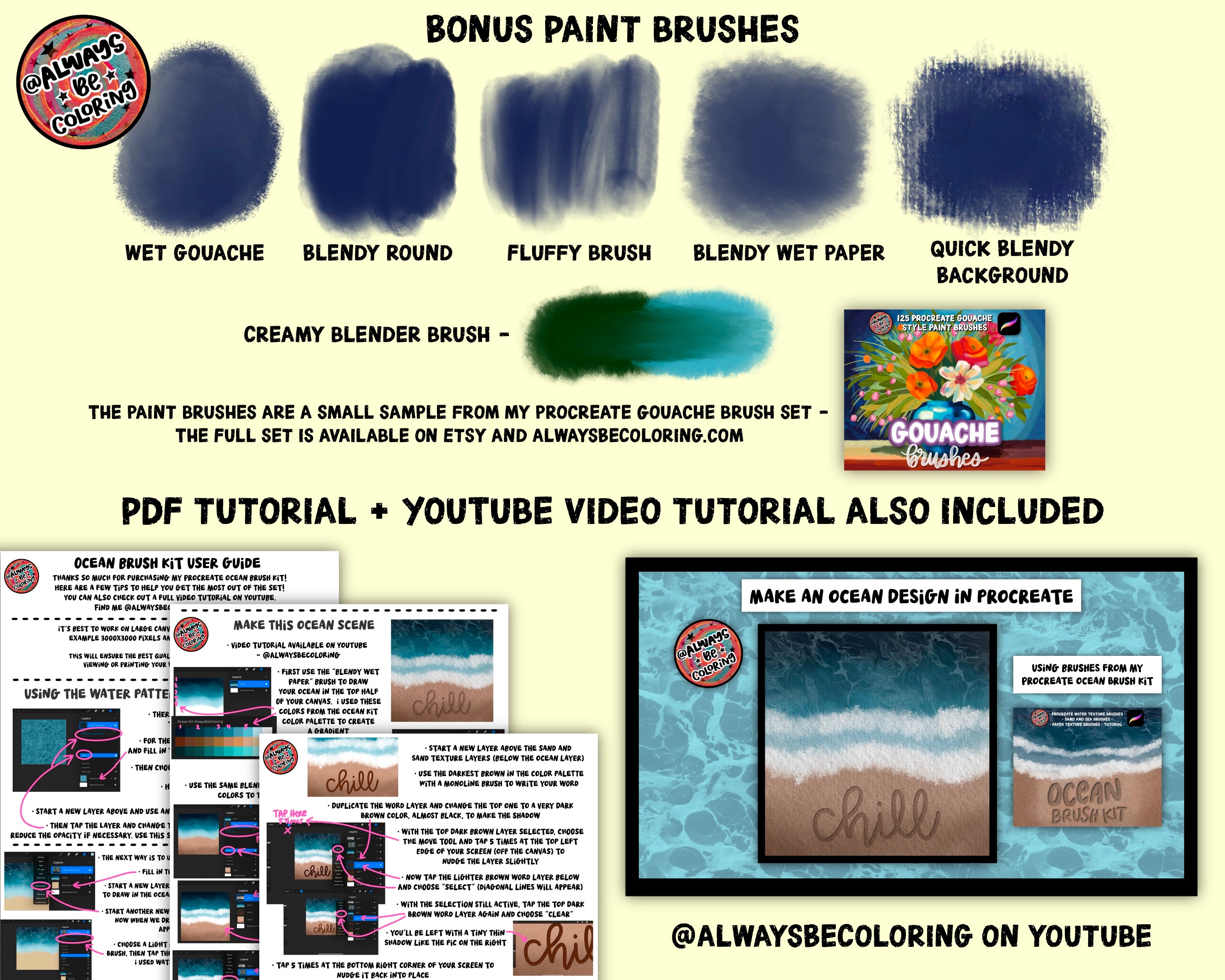 • 🎨 Paint Brushes – versatile brushes for blending and painting ocean scenes. The paint brushes are a small sample from my Procreate Gouache Brush Set - the full set is available in my shop