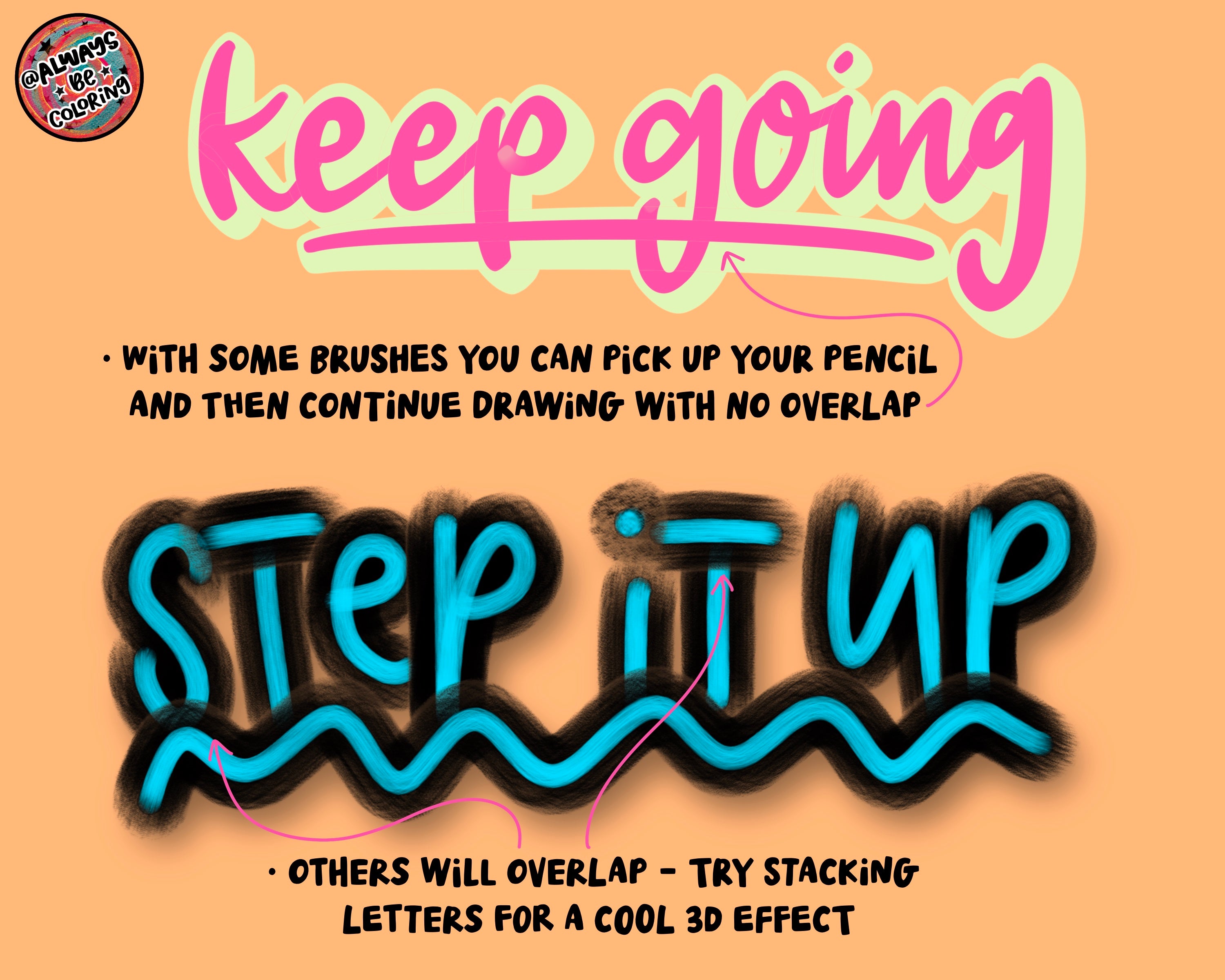 Some brushes you can lift your pencil and then continue drawing without any overlap. Others do overlap, and you can stack the brush strokes for a cool 3D stair effect. All brushes are easy to use, meant for any skill level. They are tested and optimized for smooth lettering and beautiful brush strokes!