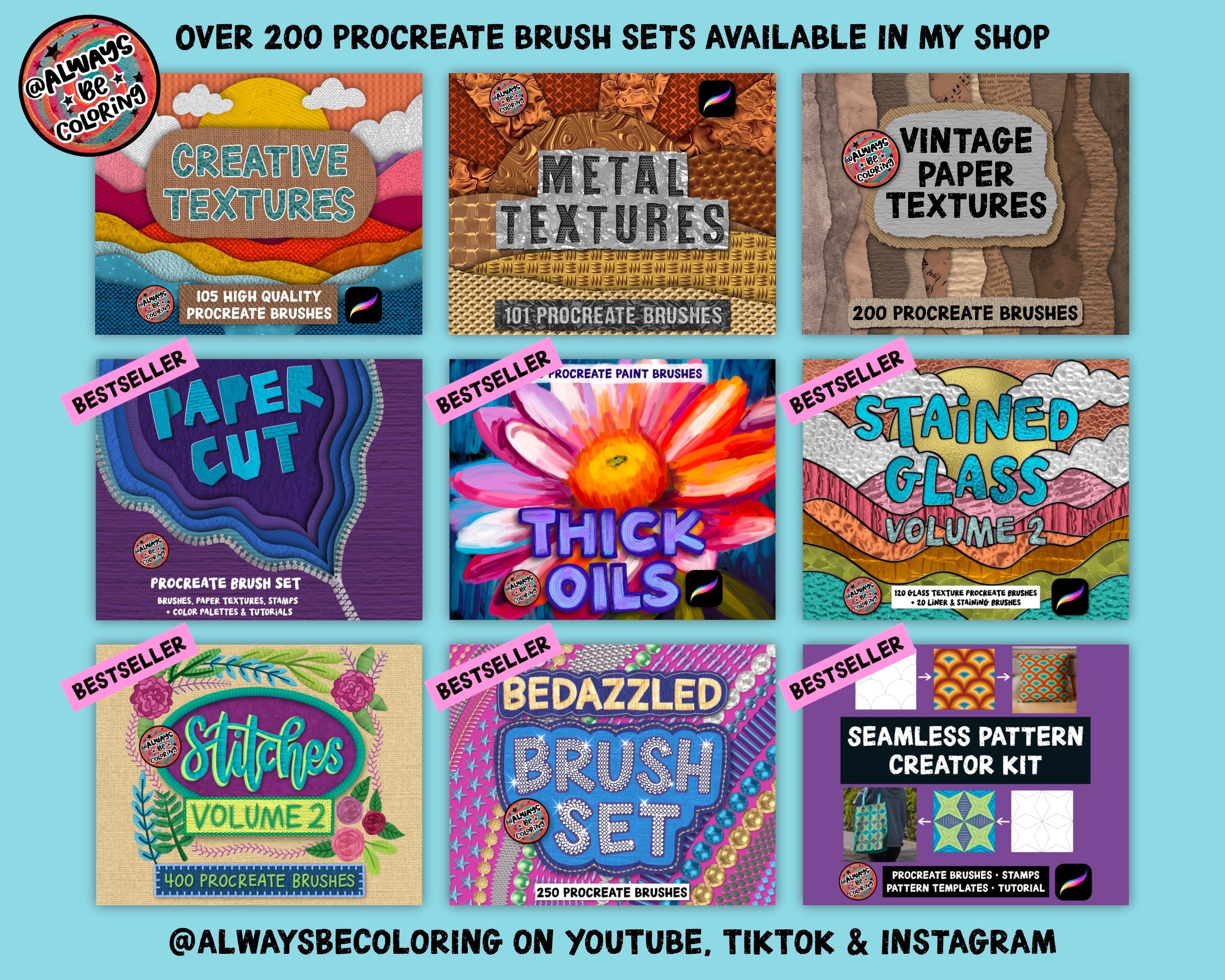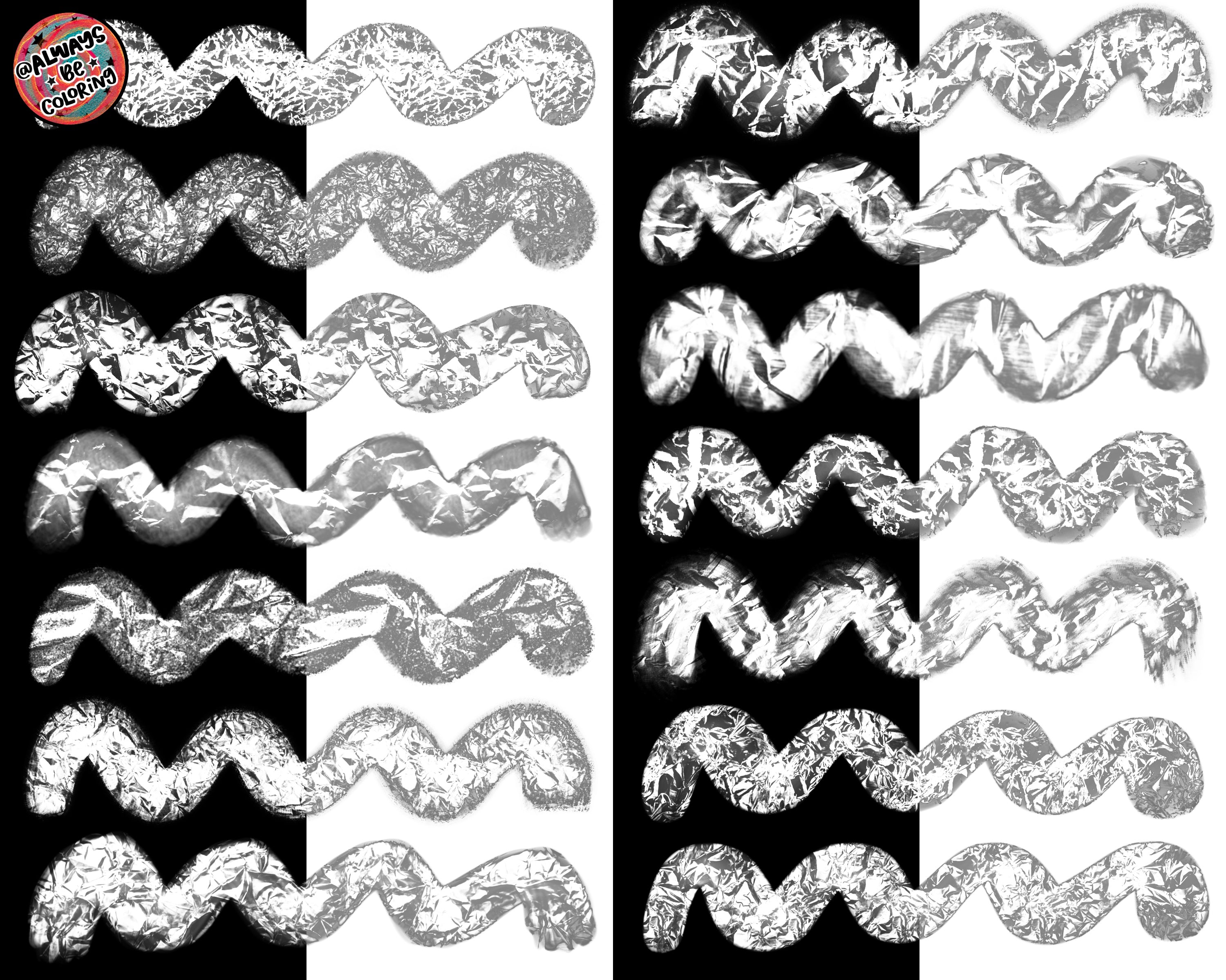AlwaysBeColoring, procreate plastic wrap brush, procreate texture brush, bubble wrap procreate brush, procreate cardboard paper, mixed media brushes, procreate foil brush, shiny procreate brushes, metallic texture brushes, procreate chrome brushes, procreate glitter brush, digital foil texture, procreate metallic lettering texture, procreate brush set, procreate texture kit, procreate beginner