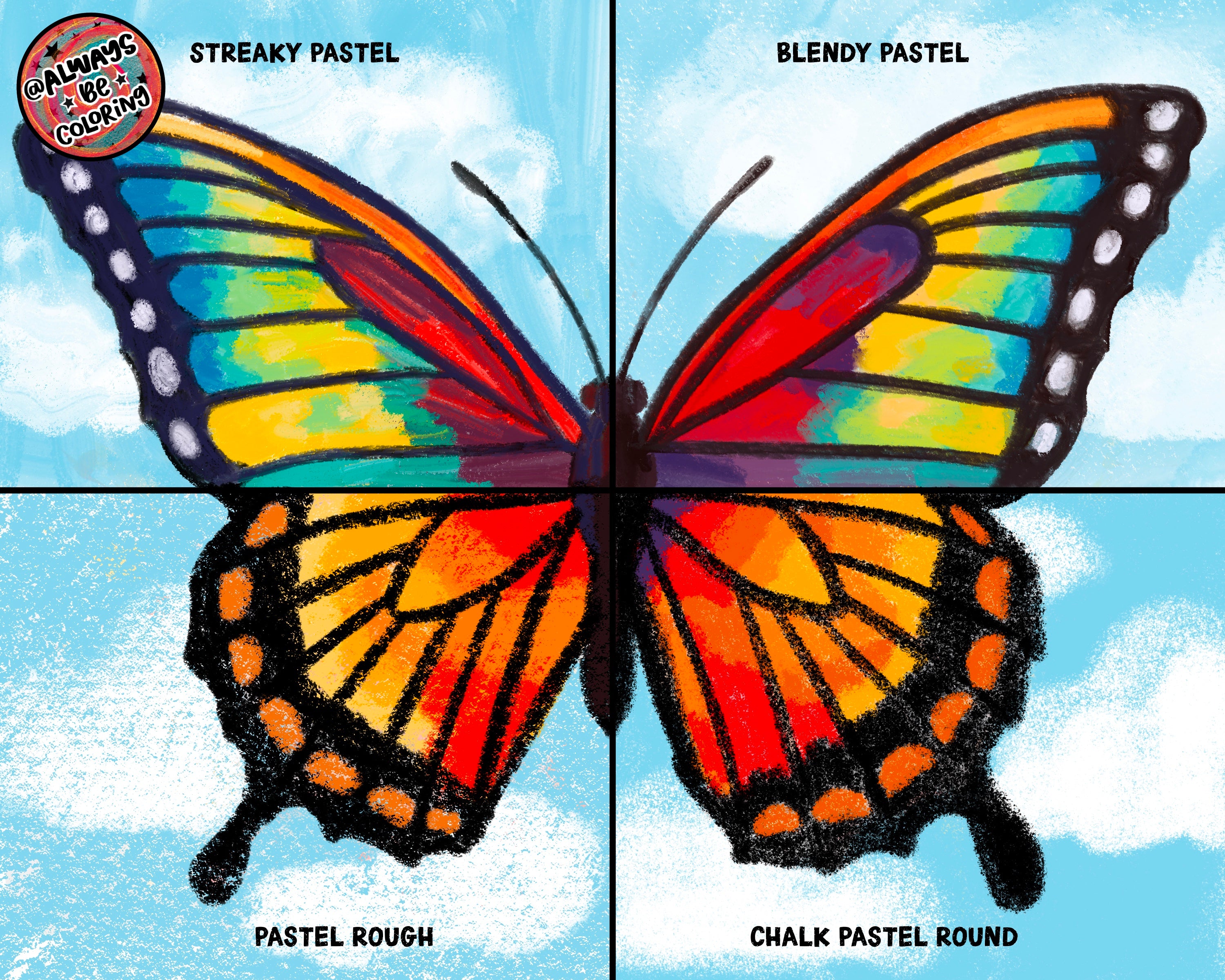 Introducing the Realistic Pastels Procreate Brush Set by AlwaysBeColoring! This set includes both Chalk Pastel Brushes with a variety of realistic textures, and Oil Pastel Brushes with great textures and blending effects like real oil pastels! Plus 40 Paper and Canvas Texture Brushes to give your digital artwork an authentic, hand crafted look. The set includes Lettering Brushes, Detail Brushes, Blending Brushes and 2 Color Brushes that change colors with varying brush pressure! Use them to create rich dynamic landscapes and portraits, or loose painterly sketches. Easily create cool pastel lettering art, bold abstract designs…the possibilities are endless!