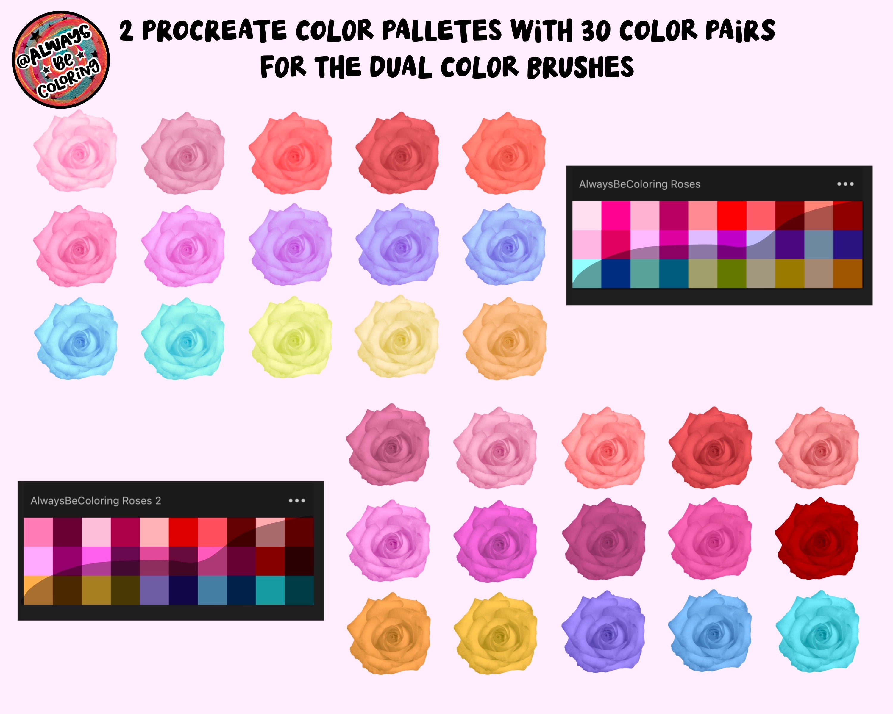 • 2 Coordinating Procreate Color Palettes (with perfect color combos for the dual color brushes)