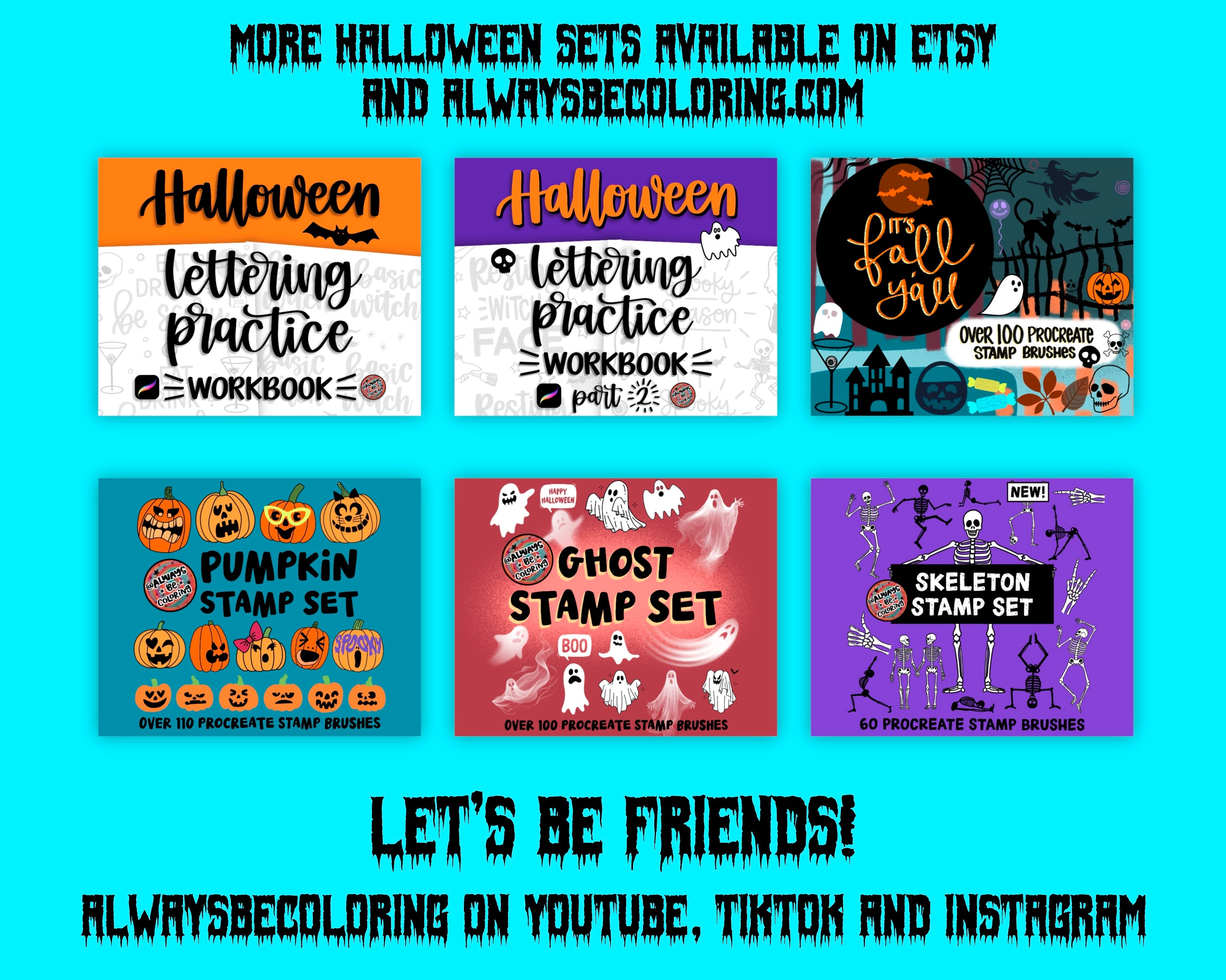 AlwaysBeColoring, Halloween Procreate brushes, spooky stamp set, Procreate Halloween stamps, Halloween clip art Procreate, ghost Procreate brush, bat Procreate brush, witch Procreate brush, pumpkin Procreate brush, spider Procreate brush, cobweb Procreate brush, haunted house Procreate stamp, skull Procreate brush, Procreate fall brushes, spooky border brushes, Halloween pattern brush, Procreate witch hat stamp, creepy Procreate brushes, Procreate jack o lantern stamp, Halloween doodle Procreate set, commercial license, procreate beginner