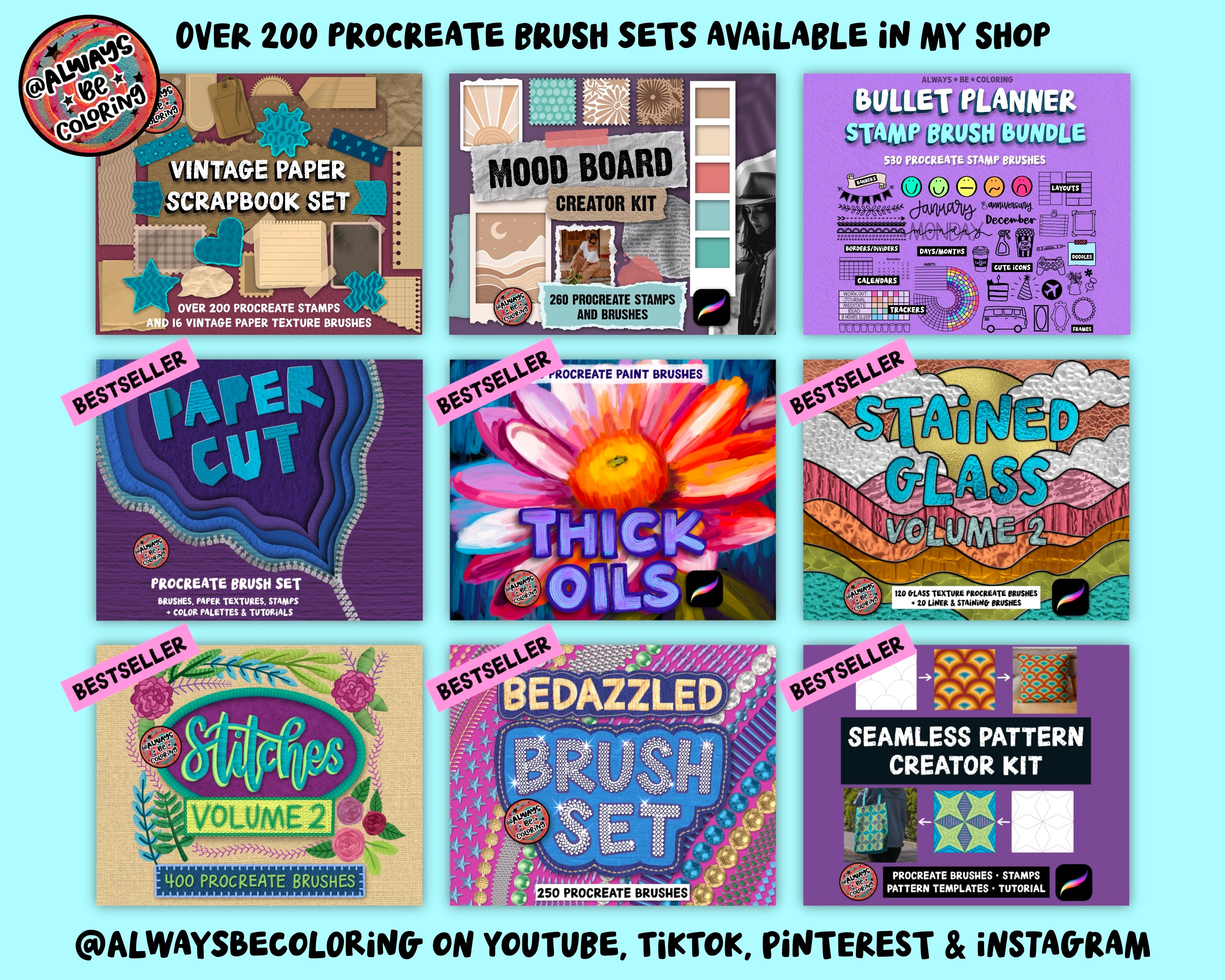 AlwaysBeColoring, Procreate Stamps, Procreate Brushes, Procreate Paper Texture Brushes, Vintage Badge Stamps, Ribbon Stamps, Bullet Planner Journal Stamps, Digital Collage, iPad Drawing, Digital Illustration, Shape Stamps, Logos and Branding, Crafts, Circuit, Silhouette, Commercial License Stamps