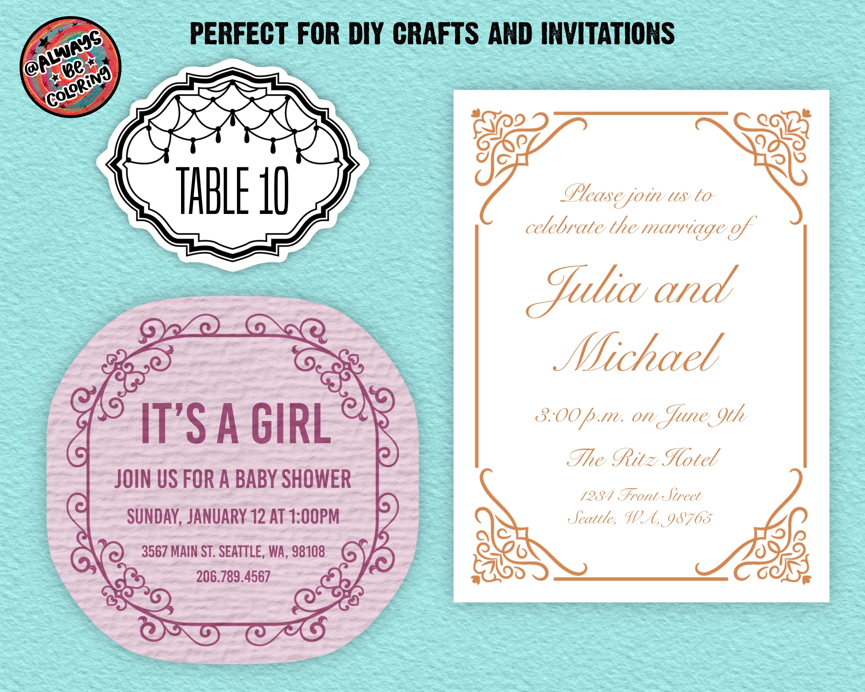 AlwaysBeColoring, Procreate Stamps, Procreate Brushes, Procreate Paper Texture Brushes, Vintage Frames Stamps, Ornamental Fancy Stamps, Bullet Planner Journal Stamps, Digital Collage, iPad Drawing, Digital Illustration, Shape Stamps, Logos and Branding, Circuit, Silhouette, Commercial License Stamps, Wedding Invitations, Baby Shower Invitations, Table Toppers, Cards, DIY Crafts