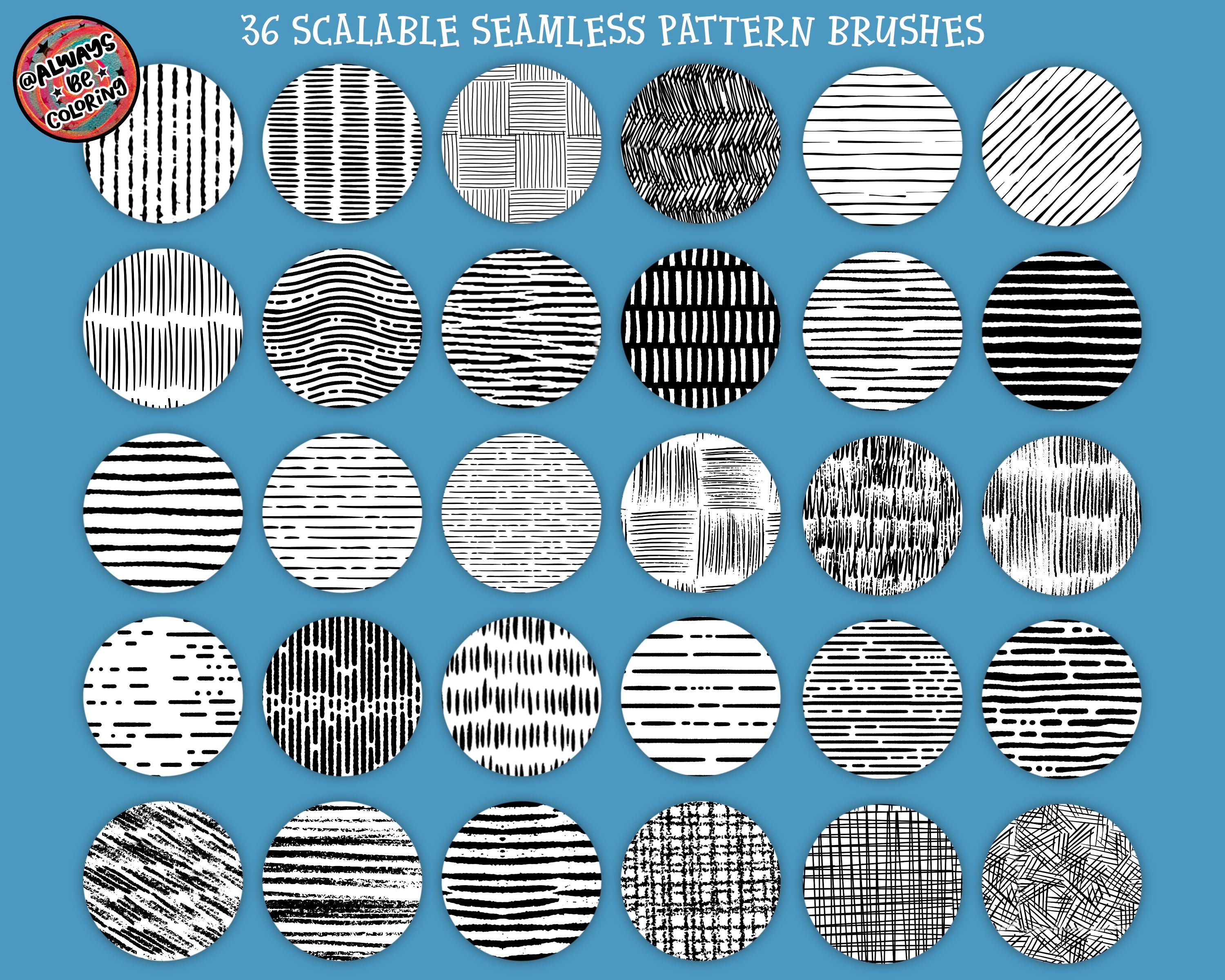 - 36 Scalable Seamless Patterns that you can rotate and use to create new patterns. Or you can layer multiple patterns for cool new combos also!