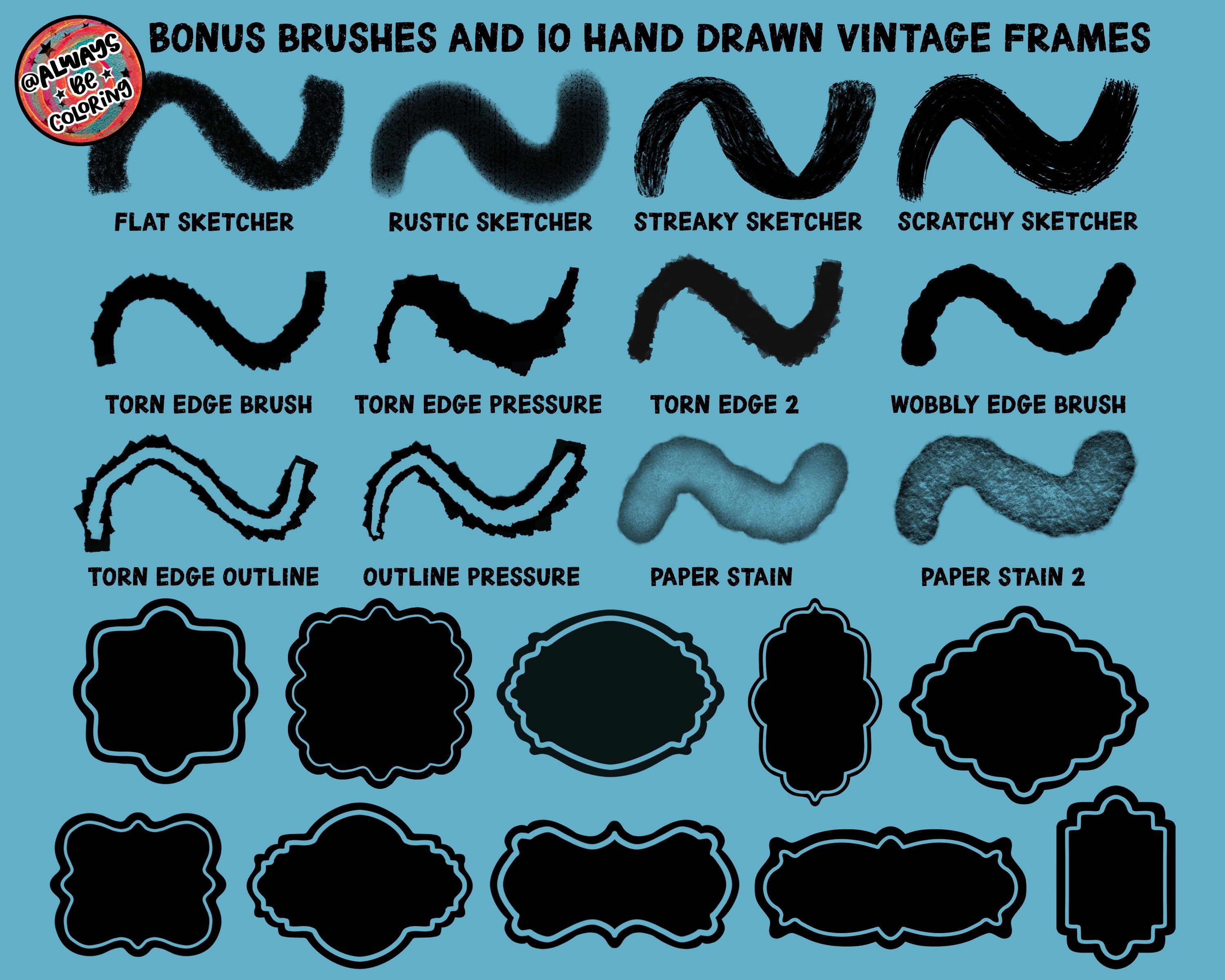 All rights remain with Amy Frierson - AlwaysBeColoring copyright 2024. You can use these brushes in designs for personal or commercial use. But the brushes and brush files cannot be duplicated, shared, copied, or redistributed in any way, as is or altered! You cannot claim these files as your own. Thank you!