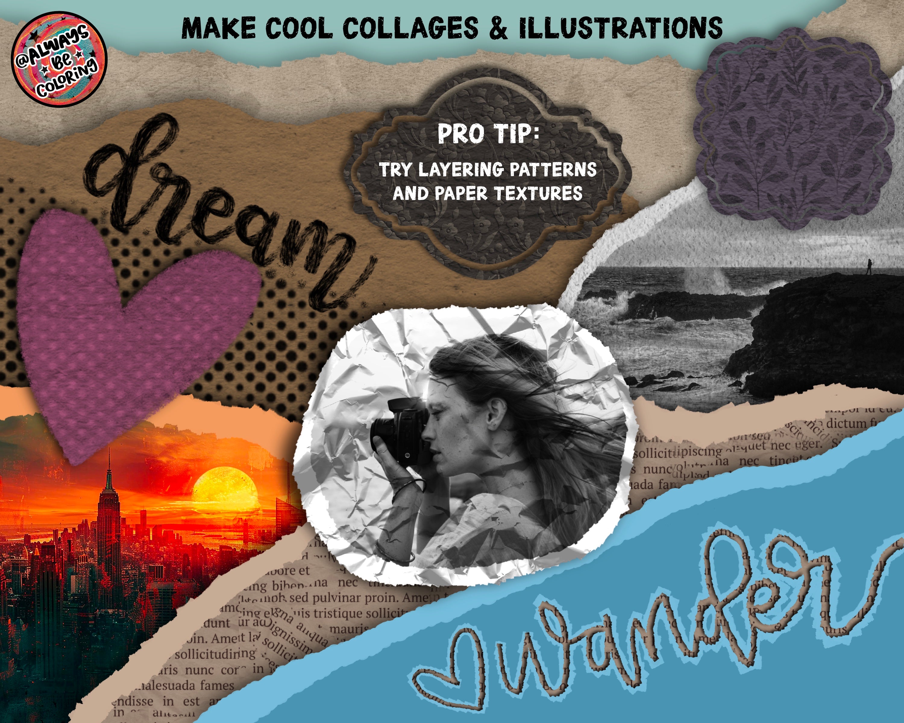 This Procreate Vintage Paper Texture Set is meant for any skill level and comes with a user guide with instructions for using the brushes, plus tips and tutorials for making realistic digital collages.