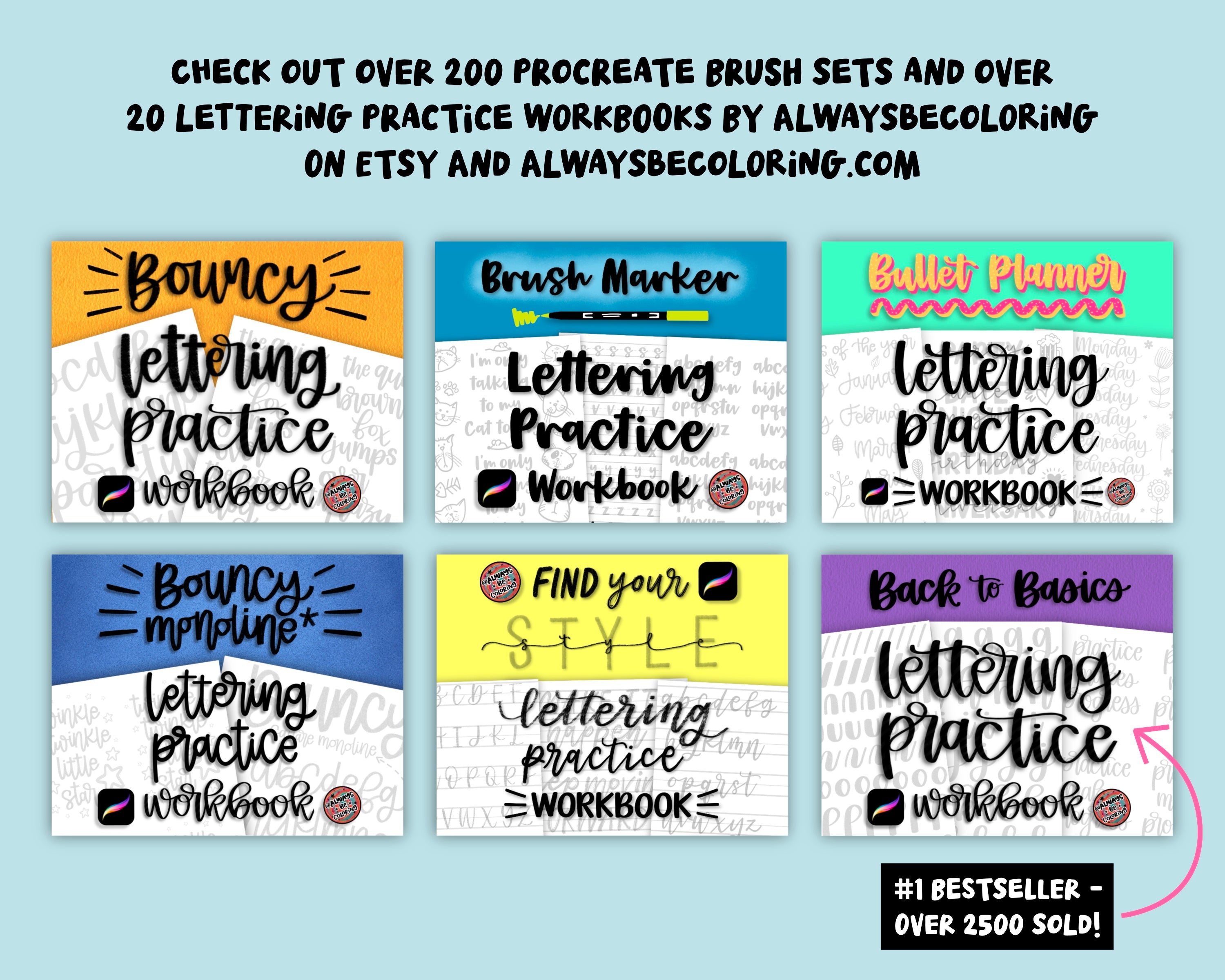 This set is meant for any skill level! It’s great for beginners or pros who want to learn different styles. It comes with 30 PNG practice worksheets to be used in the Procreate app on iPad, plus a PDF workbook that you can print at home and use with markers.