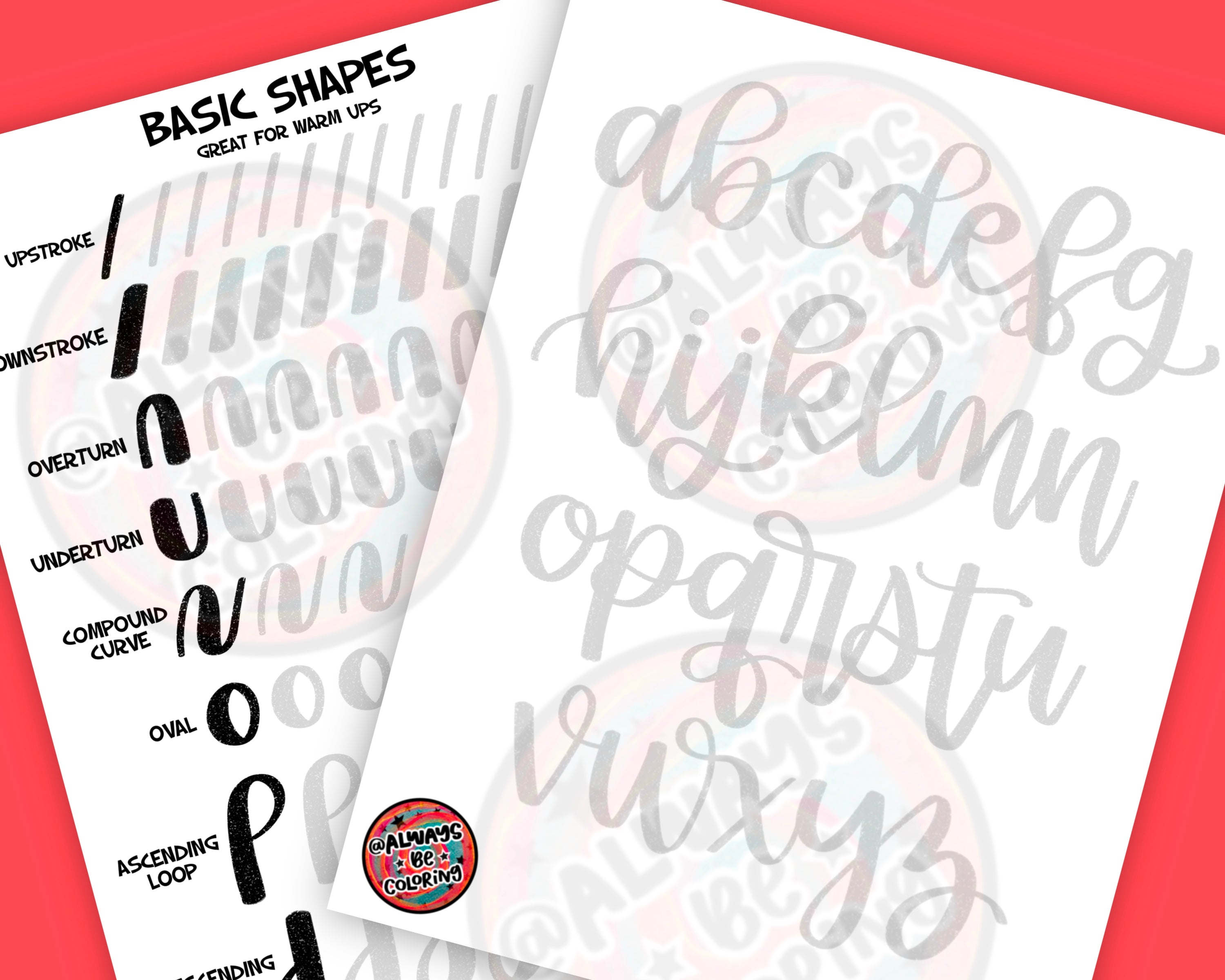 1 Zip files with PNG files of all lettering practice sheets for Procreate