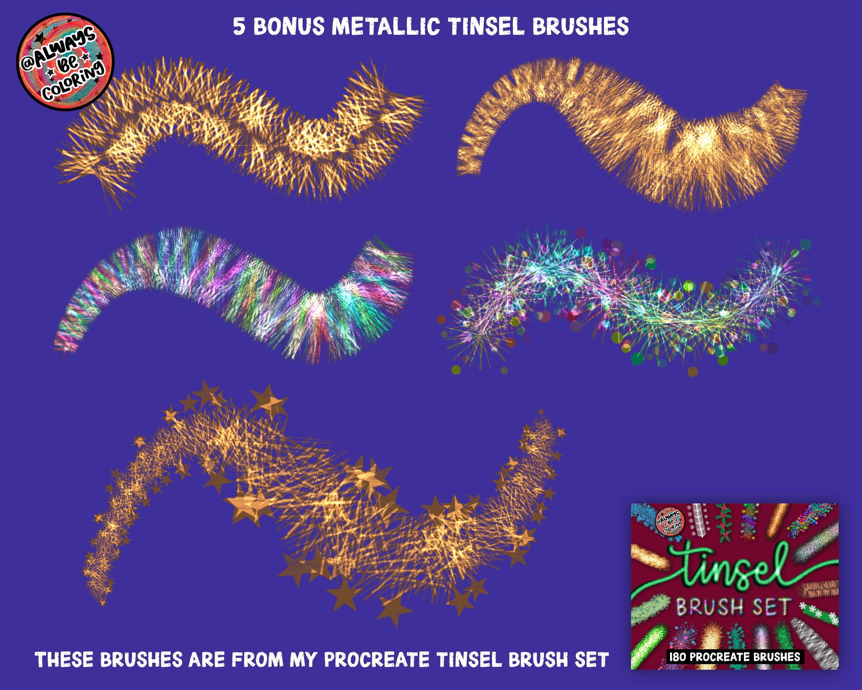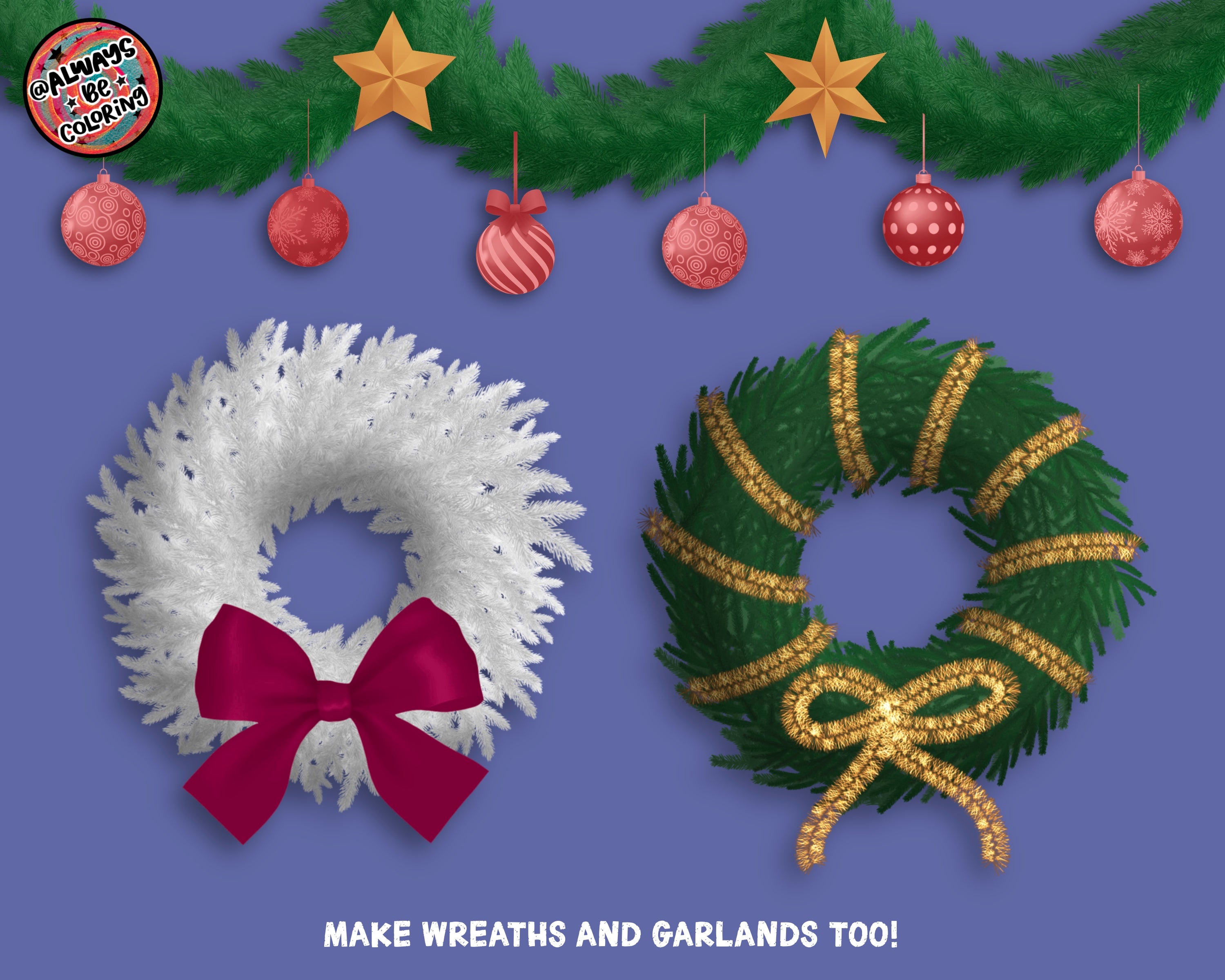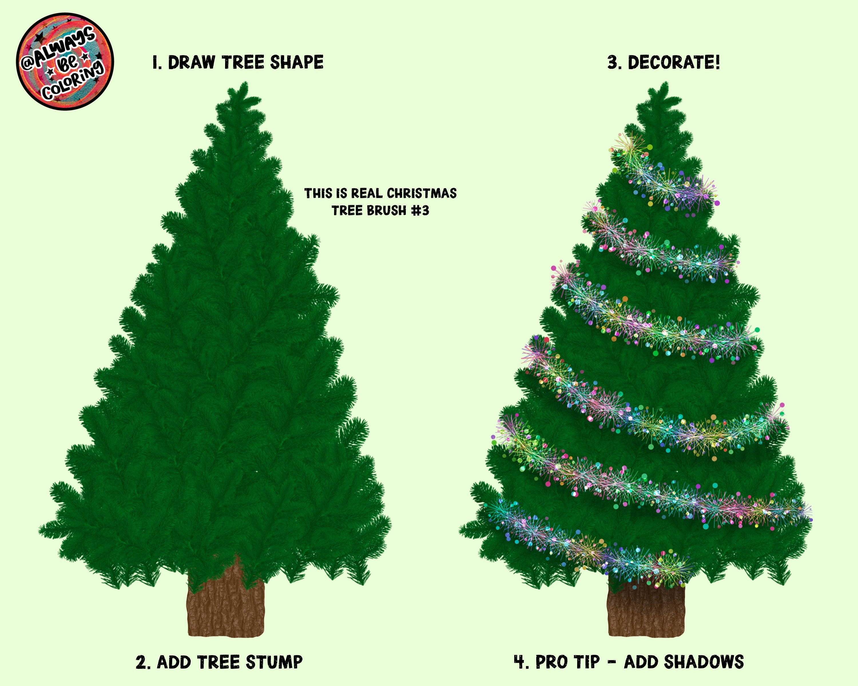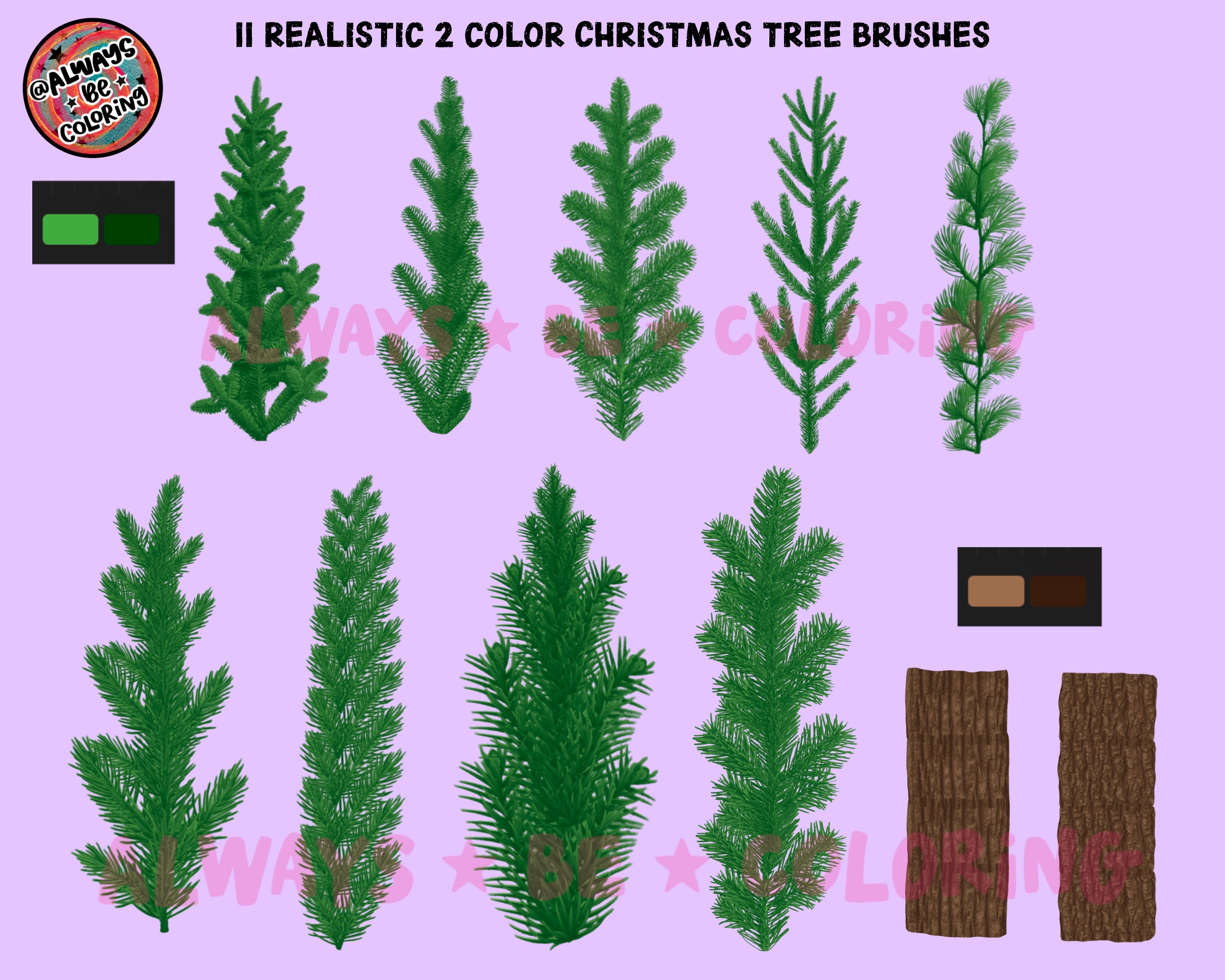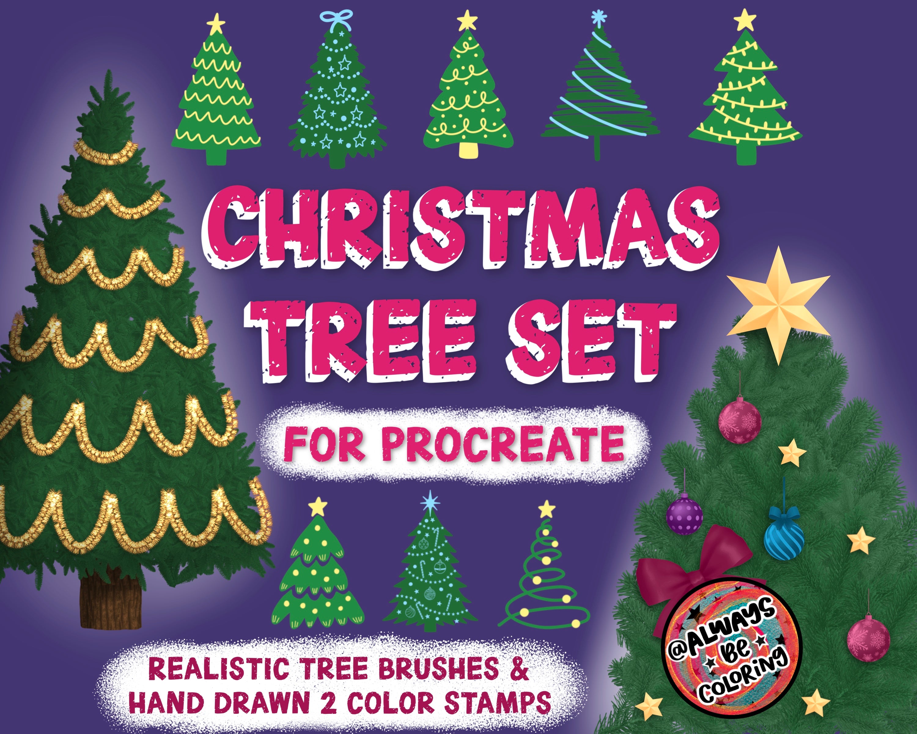 Over 80 Procreate Christmas Tree Brushes and Stamps. Featuring 11 extremely realistic Dynamic Dual Color Christmas Tree Brushes, you can easily make beautiful lifelike illustrations in no time! The brushes are pressure sensitive, and follow the stroke of your Apple Pencil so you can make trees, wreaths, garlands, etc. The set also includes 40 hand drawn 2 color stamps with Stylized Christmas Tree Designs, 8 Dual Color Star and Ornament Stamps, a Ribbon Stamp and a Candy Cane Stamp for decorating the trees. Plus I’ve included 5 Metallic Tinsel Brushes from my Procreate Tinsel Brush Set! This set is easy to use and has tips for using the brushes included in the set. Use it this holiday season to create unique cards, illustrations, patterns, lettering art, and more!
