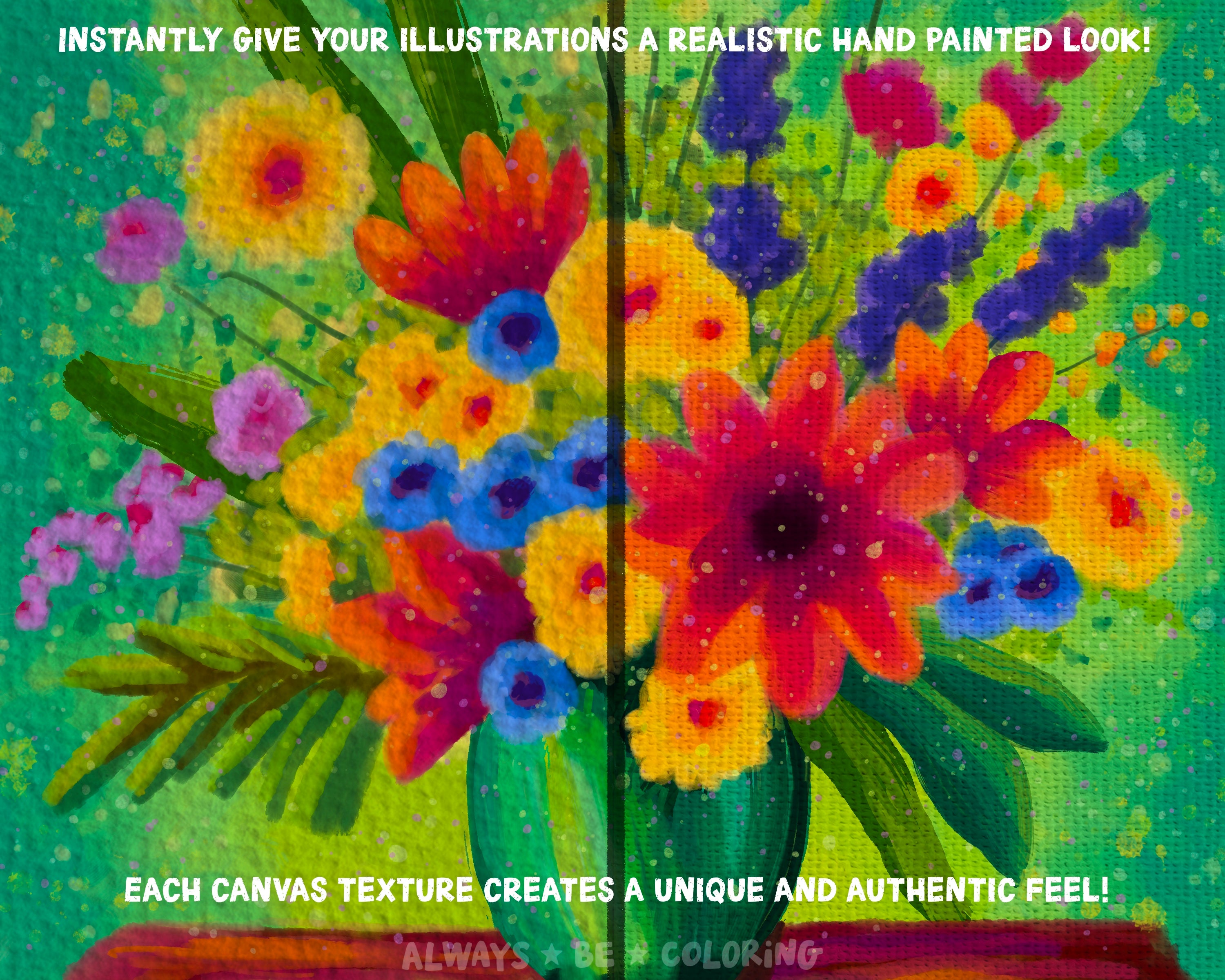 Introducing the new Procreate Fine Canvas Texture Set by AlwaysBeColoring! This set includes 70 seamless Procreate canvas texture brushes, plus 25 high quality canvas texture PNG files. Add them to your lettering, illustrations and digital artwork to instantly give your work a realistic hand painted look! There are tons of beautiful textures and a wide variety of effects you can achieve with the set! Elevate your artwork to the next level with a single click or brush stroke!
