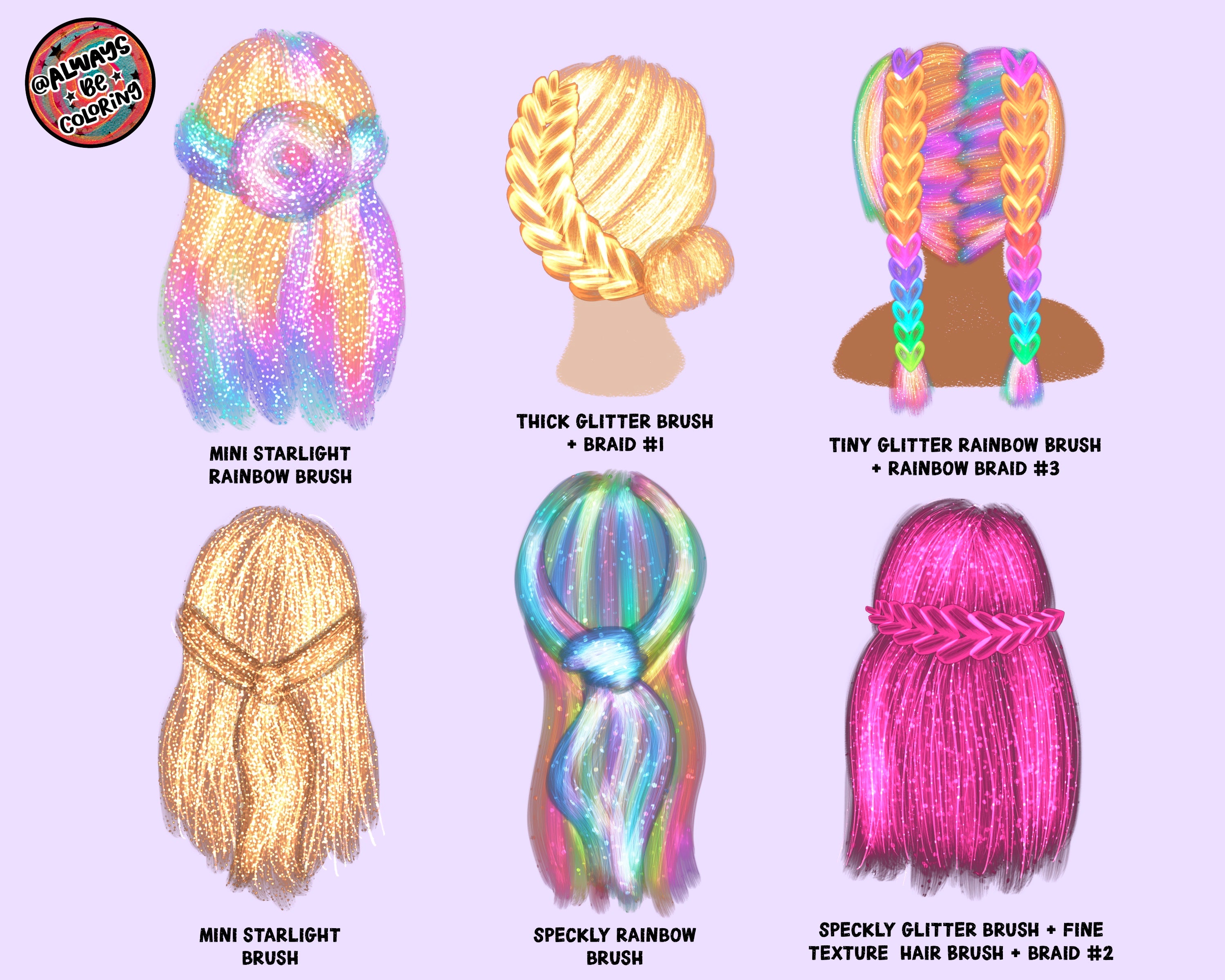 AlwaysBeColoring, Procreate hair brushes, glitter Procreate brushes, rainbow hair brushes, digital art brushes, Procreate character brushes, Procreate glitter set, Procreate curls brushes, Procreate braids, Procreate texture brushes, fantasy hair brushes, shiny hair Procreate, Procreate portrait brushes, sparkly Procreate brushes, Procreate glitter texture, digital illustration tools, Procreate beauty brushes, hair texture Procreate, Procreate fashion, procreate anime, manga brushes