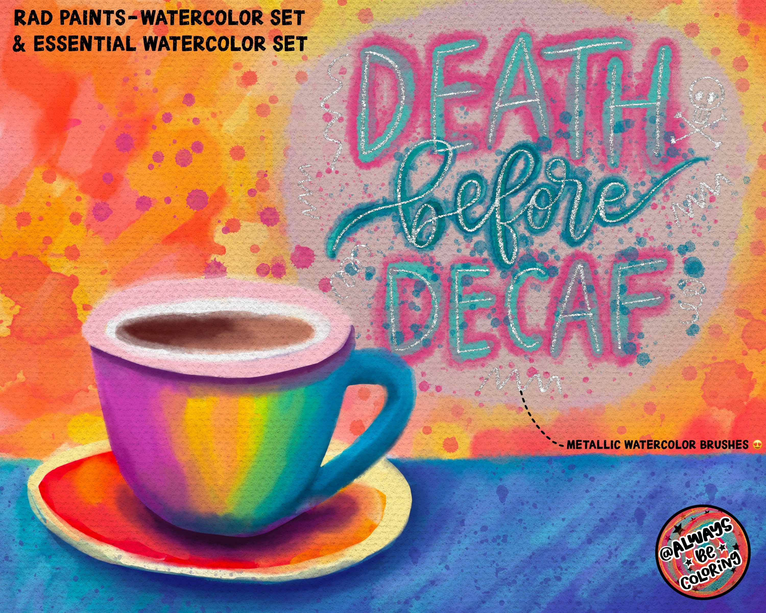 - Watercolor Essentials - 88 brushes including gorgeous metallic and glitter watercolor brushes