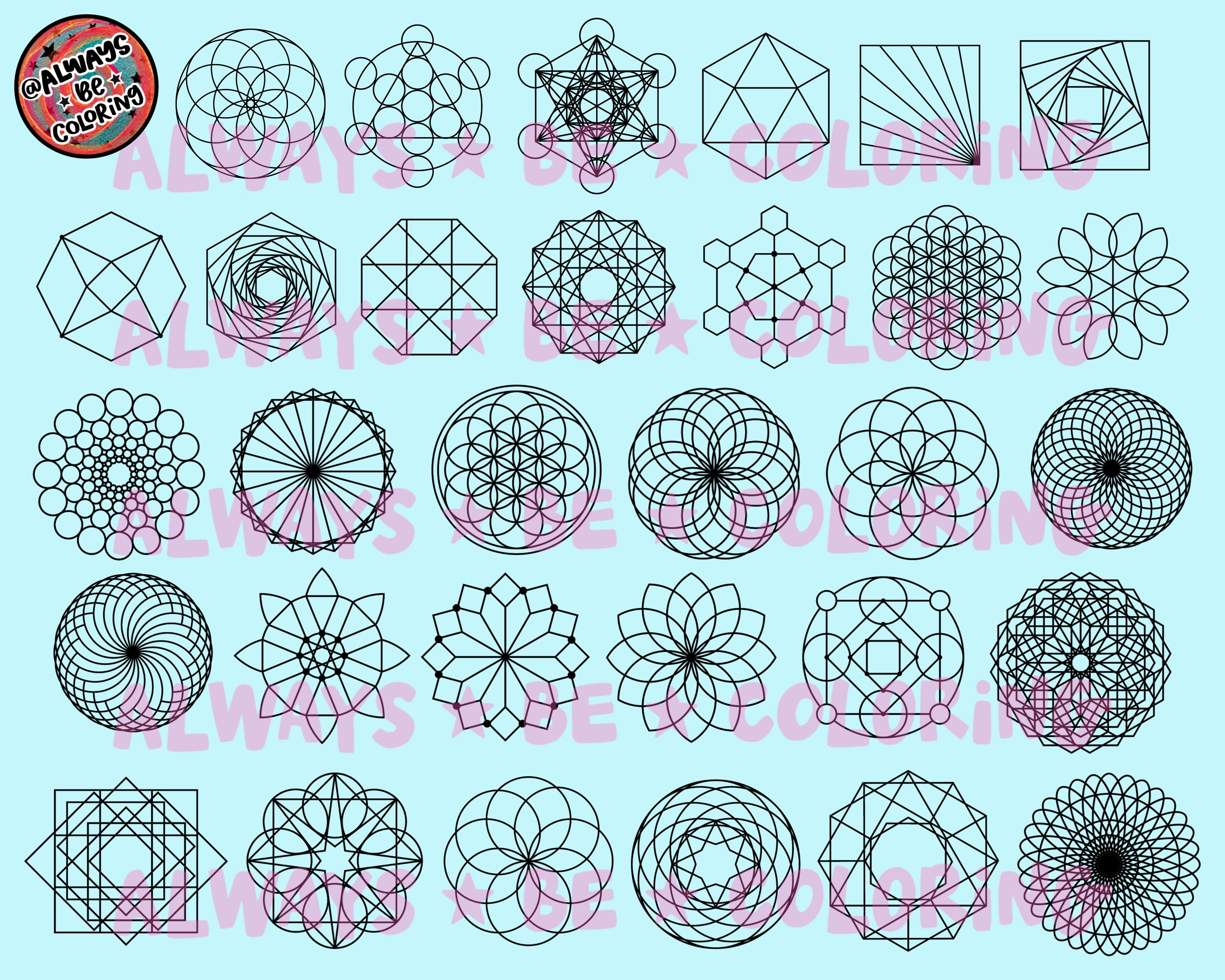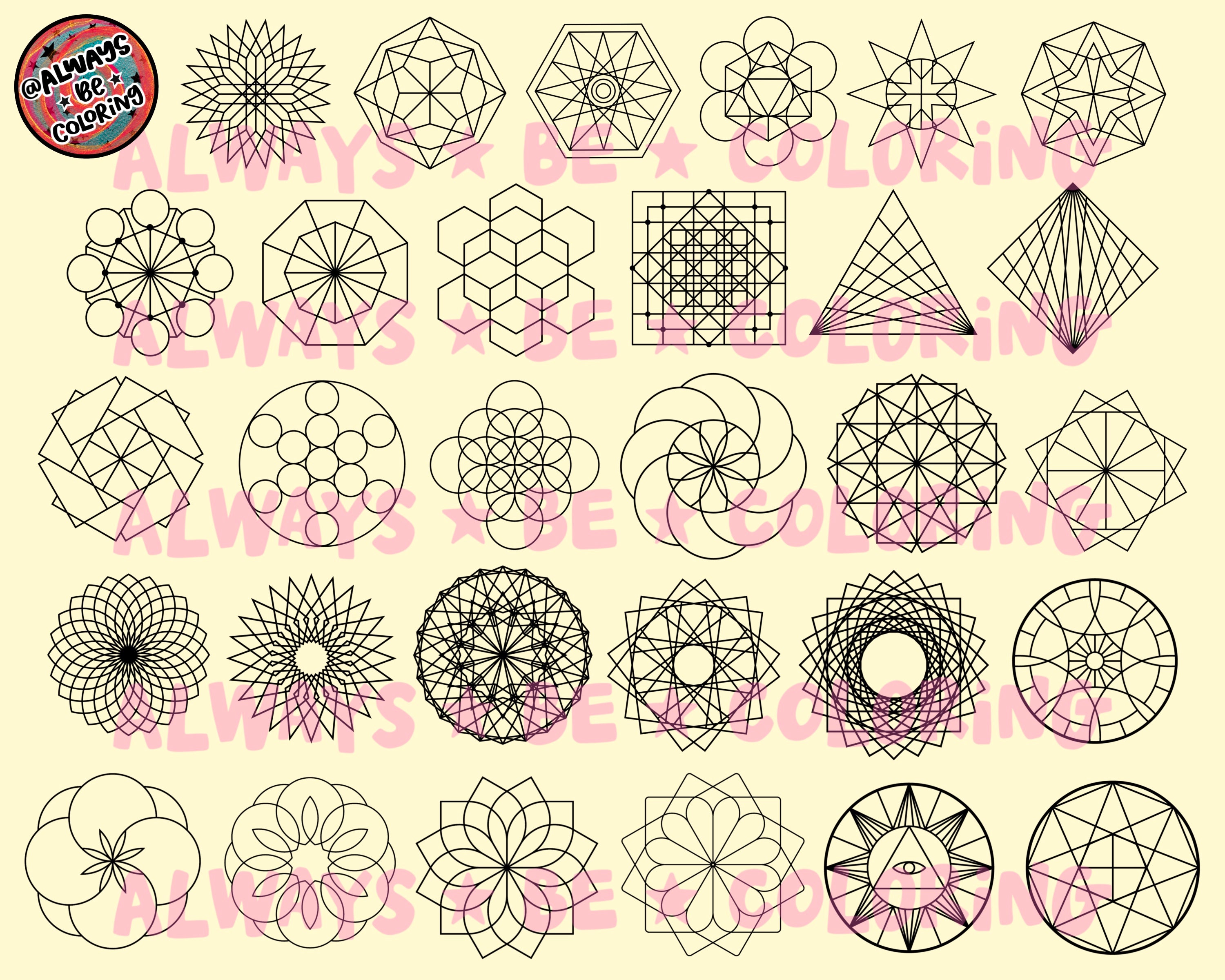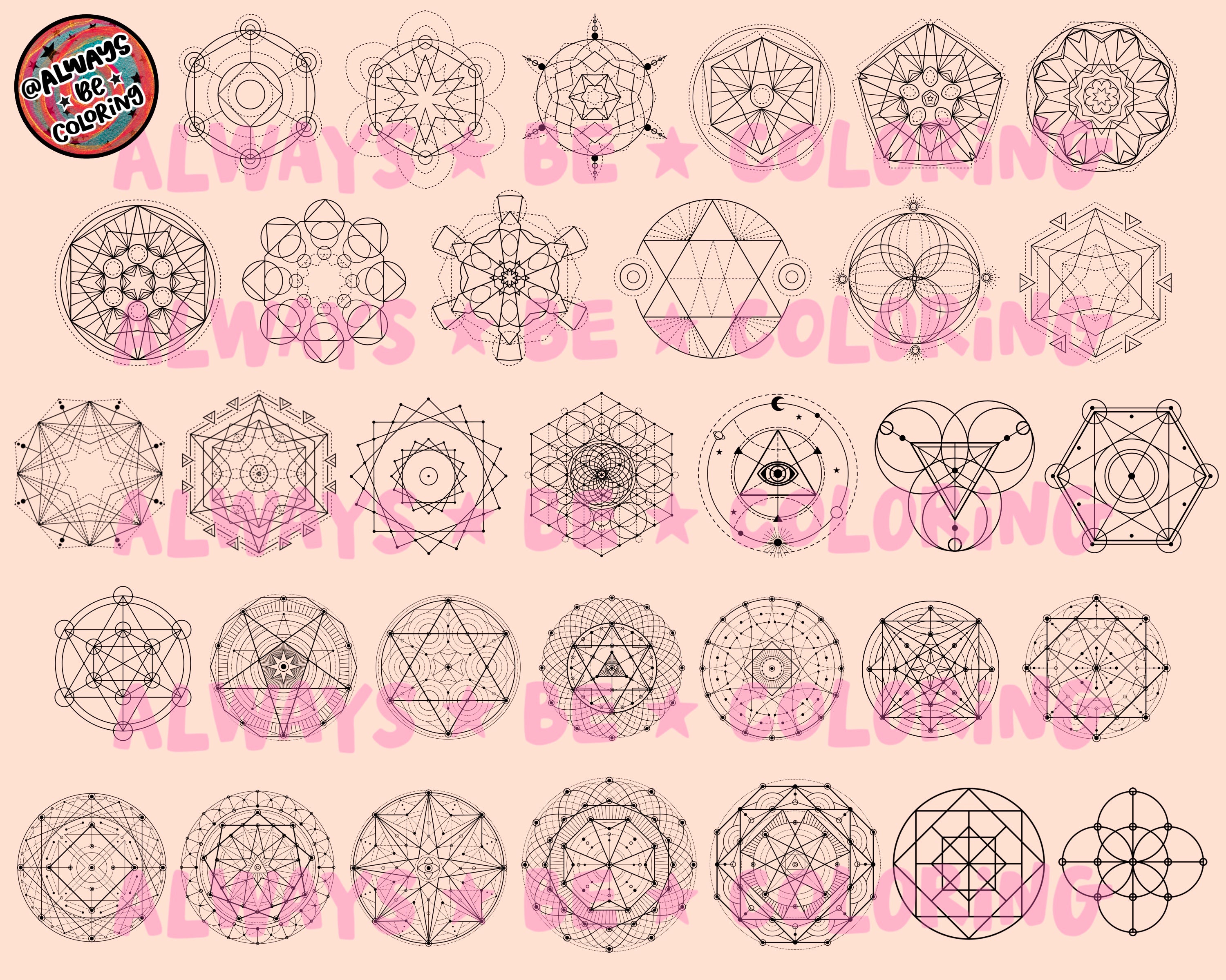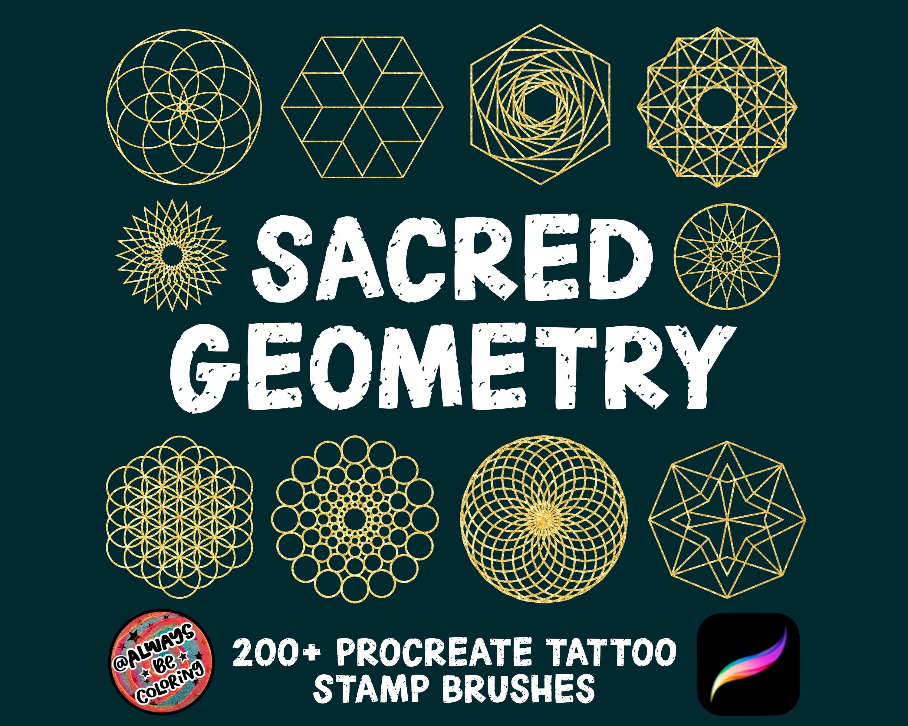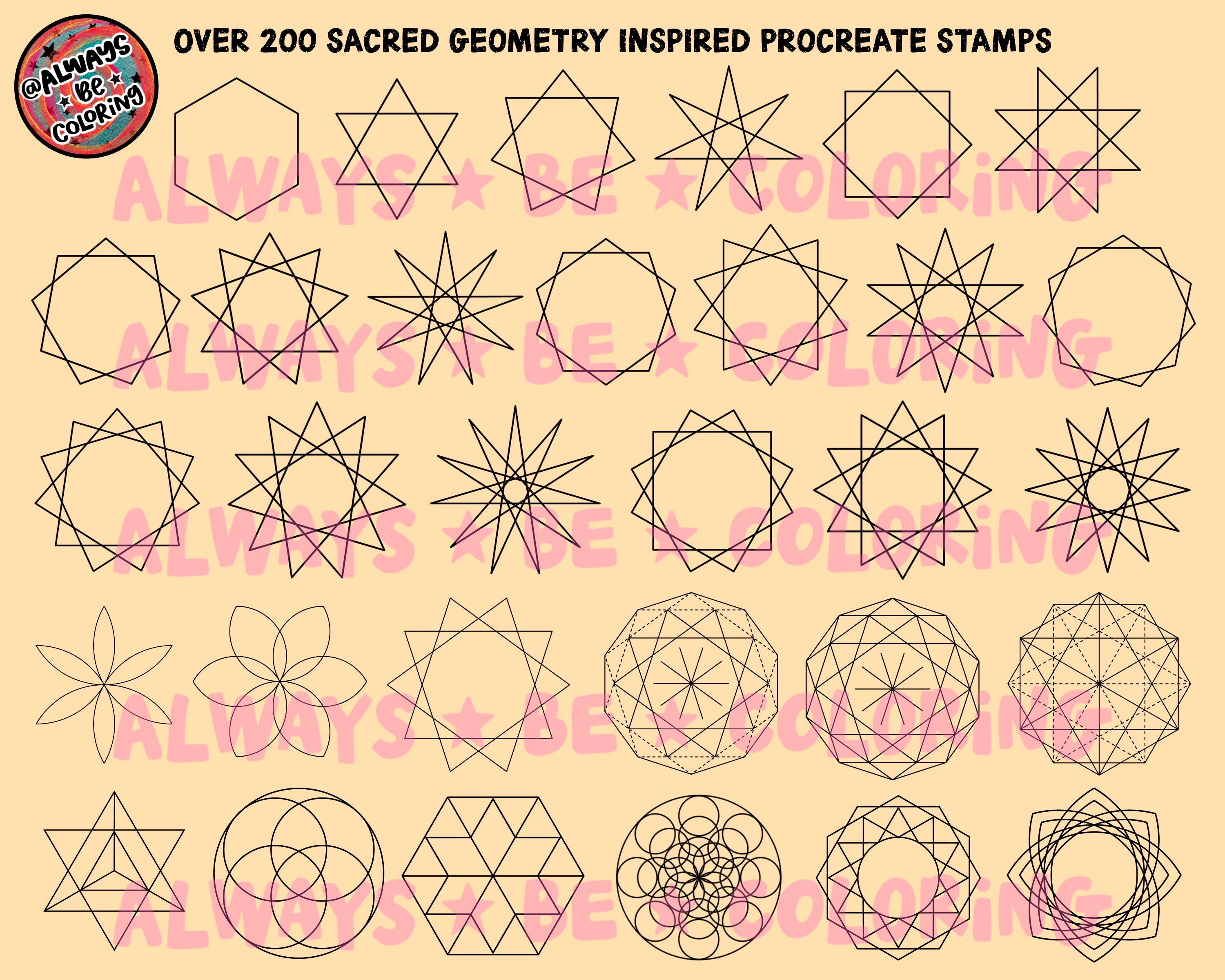 AlwaysBeColoring, Procreate Stamp Set, Procreate Sacred Geometry Stamp Bundle, Procreate Geometric Shapes Stamps, Procreate Ornamental Logo, Procreate Circles, Squares, Triangles, Hexagons, Stars, Lines, Procreate Geometry Symbols Stamps, Abstract Shapes Stamps, Alchemy, Mystic Procreate Stamp Brushes