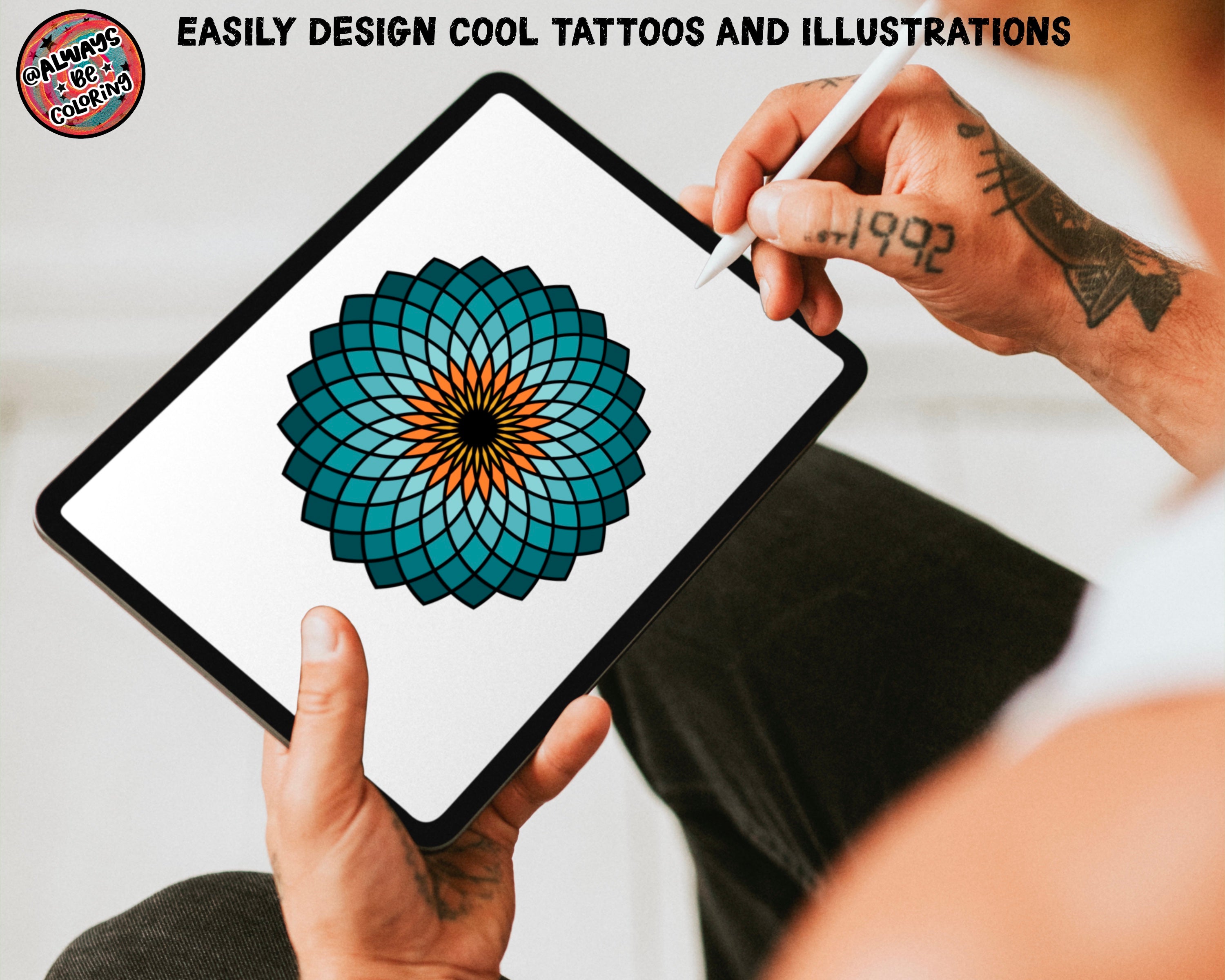 Over 200 Procreate Sacred Geometry inspired Stamp Brushes for Tattoos and Digital Illustrations! The designs start off with simple shapes but quickly get very complex. Even with the Symmetry Tool in Procreate, these types of shapes can be difficult and time consuming to make so this set will save you lots of time and effort! Use them to create intricate tattoos or to create cool unique logos for your small business or for clients. Make crafts and stickers, the possibilities are endless! Commercial use terms are below.