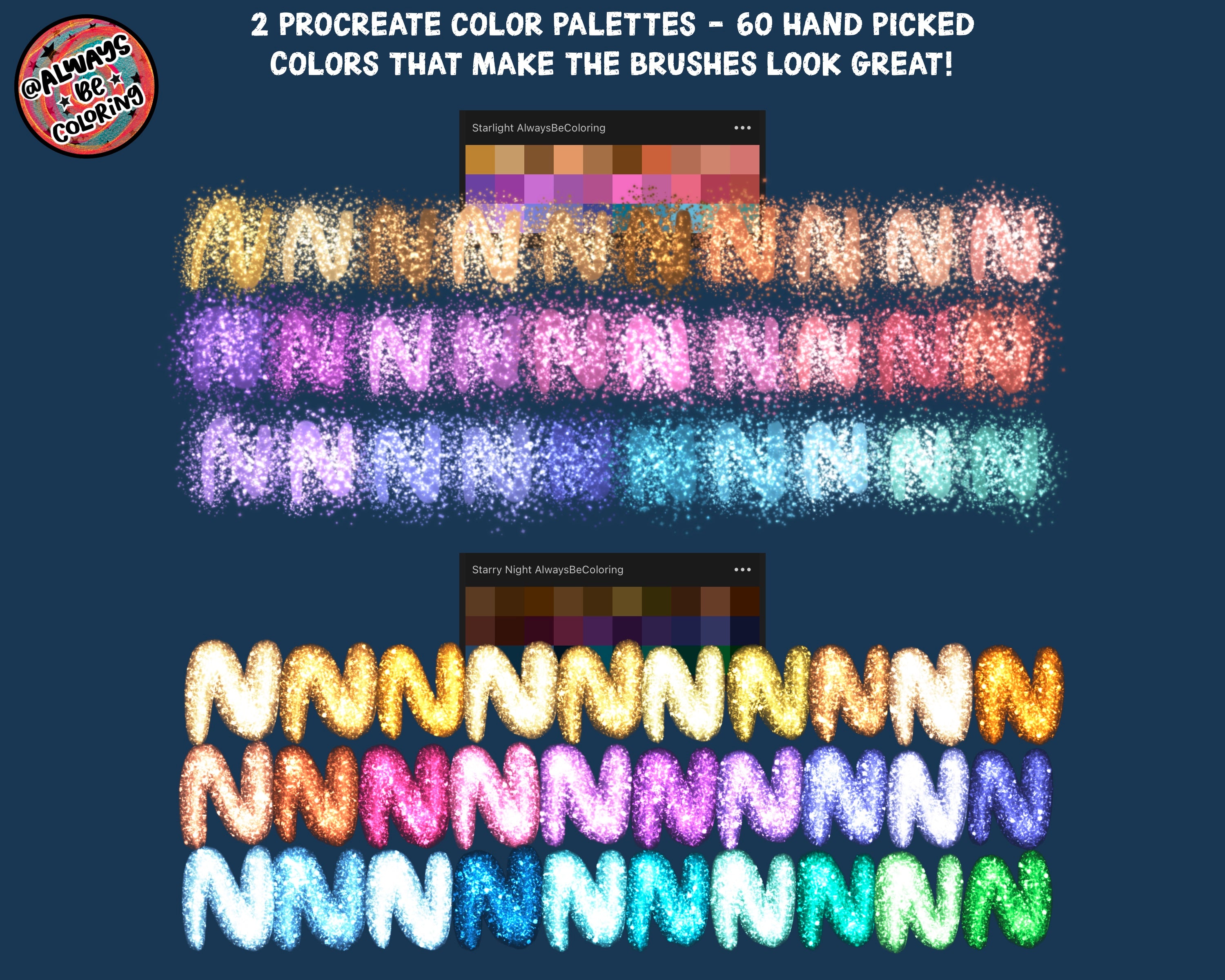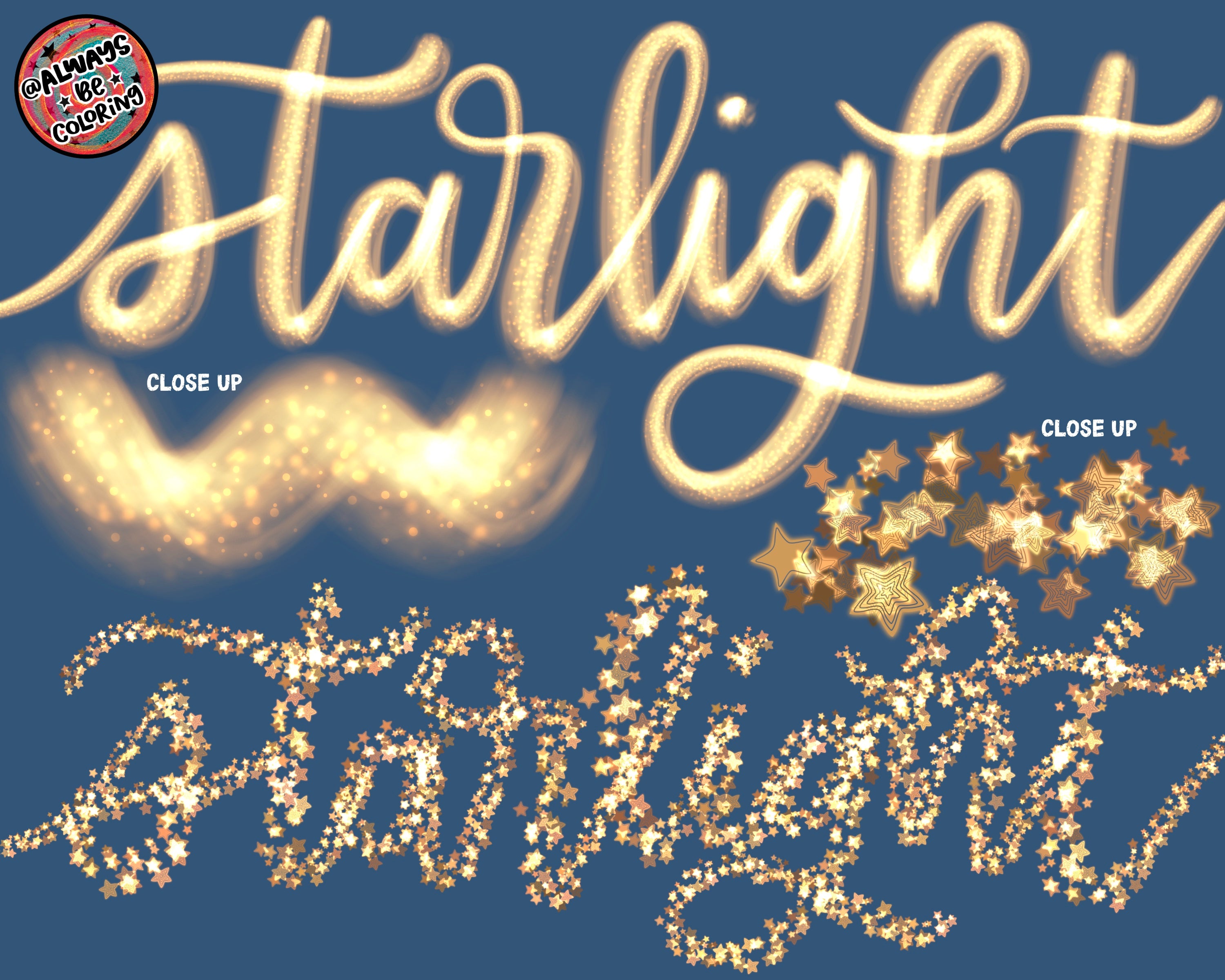 AlwaysBeColoring, Procreate Glitter Brush Set, Procreate Starlight Brush Set, Procreate Metallic Brushes, Procreate Lettering Brushes, Procreate Sparkle Shimmer Brushes, Procreate Stars, Procreate Cosmic, Procreate Fashion, Procreate Drawing, Procreate Color Palettes, Procreate Illustrations