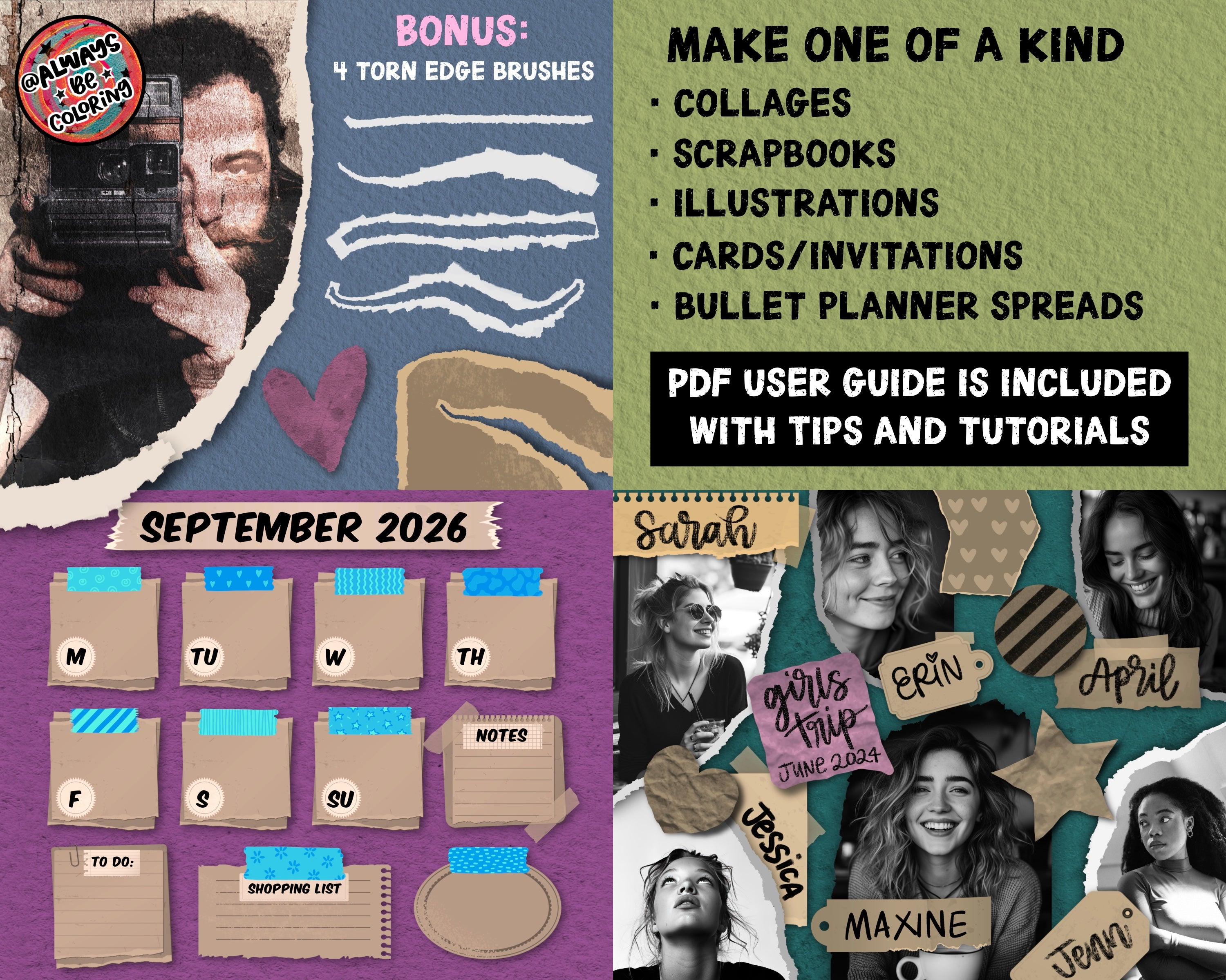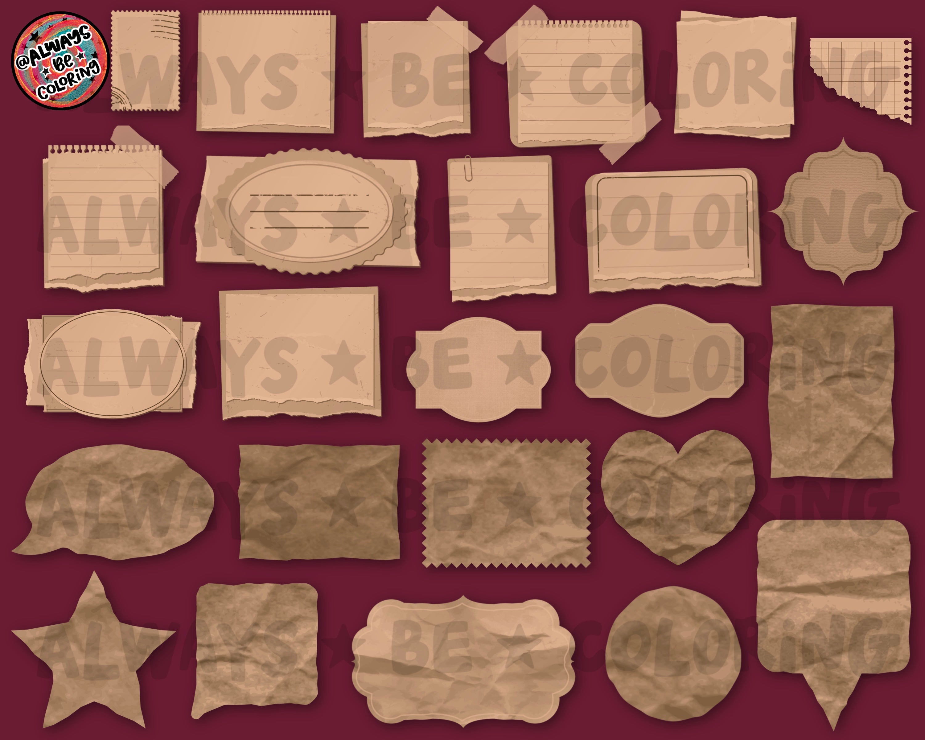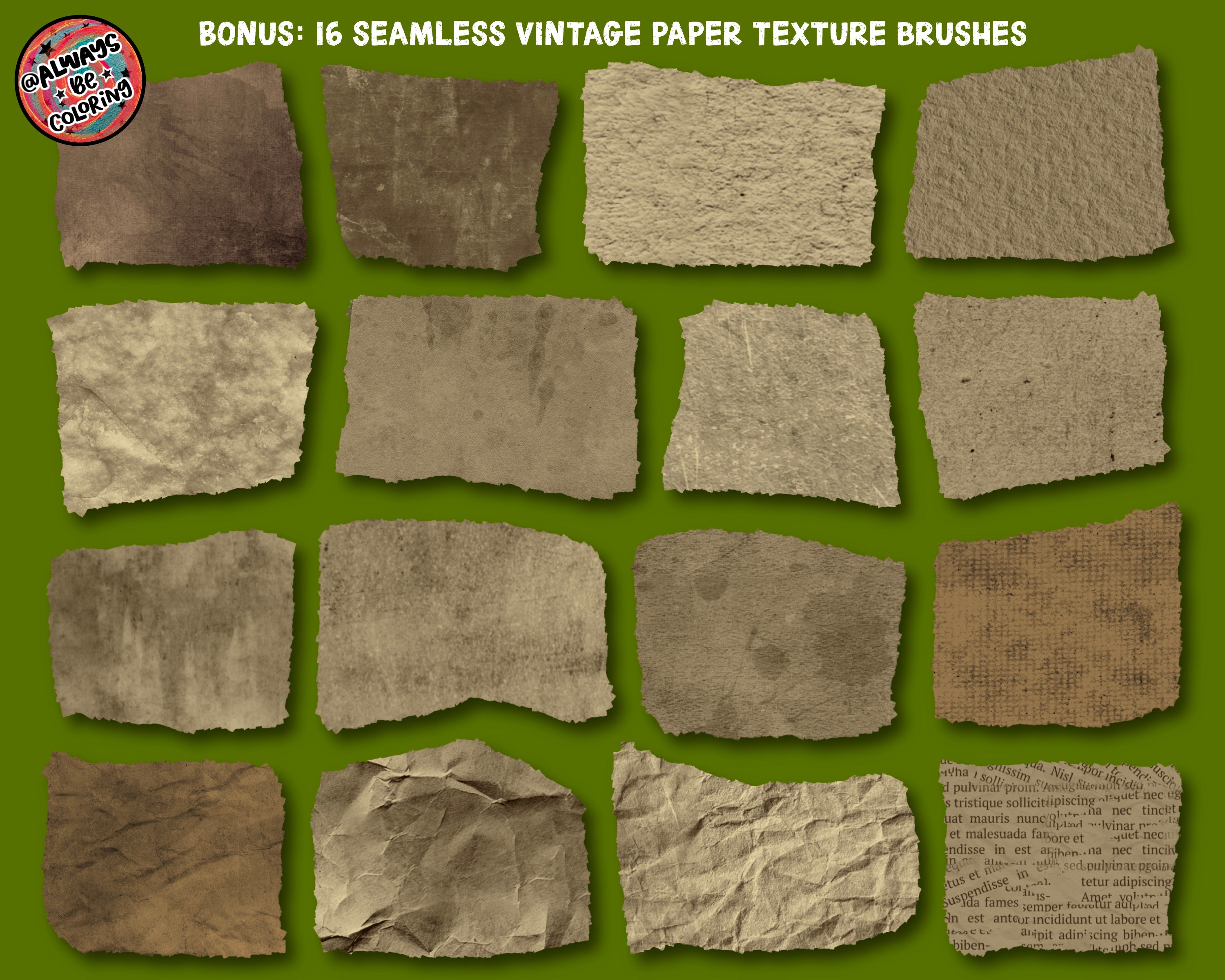 Over 200 Procreate Vintage Paper and Scrapbook Paper Stamps, plus 16 Seamless Vintage Paper Texture Brushes and an in depth PDF User Guide with tips and tutorials! All the stamps are unique dual colored stamps that bring out the details in the stamps and also makes them opaque, not transparent, so you can layer them or use them on any background. Use this set to make scrapbooks, collages, illustrations, cards, invitations or bullet planner journal spreads!
